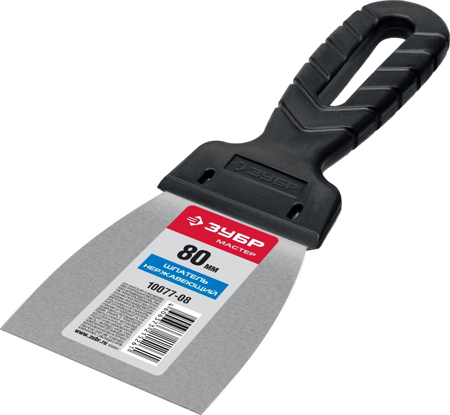 Нержавеющий шпатель ЗУБР 80 мм, пластиковая ручка