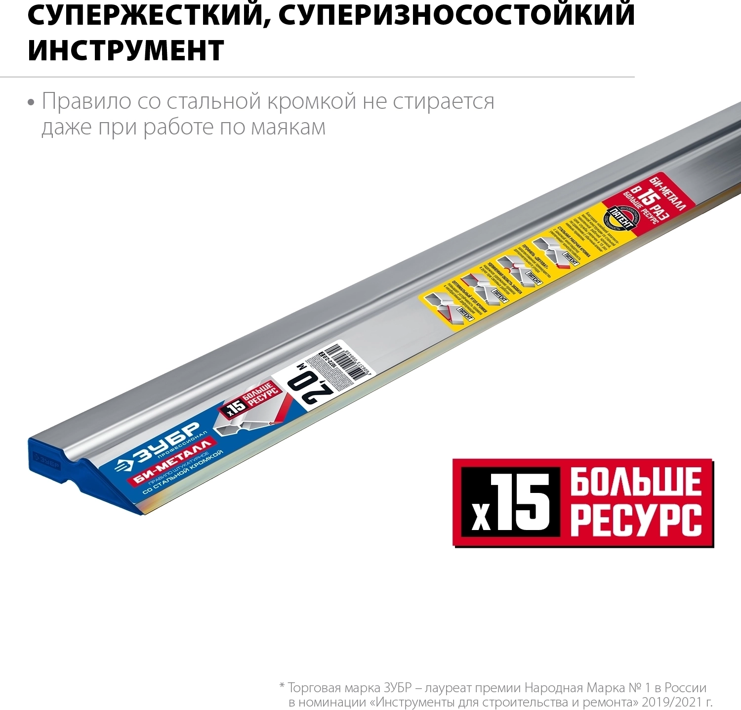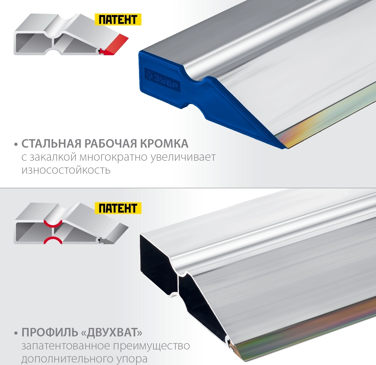 Благодаря новейшей запатентованной конструкции со стальной закаленной рабочей кромкой, срок службы увеличен в 15 раз по сравнению с обычным алюминиевым правилом