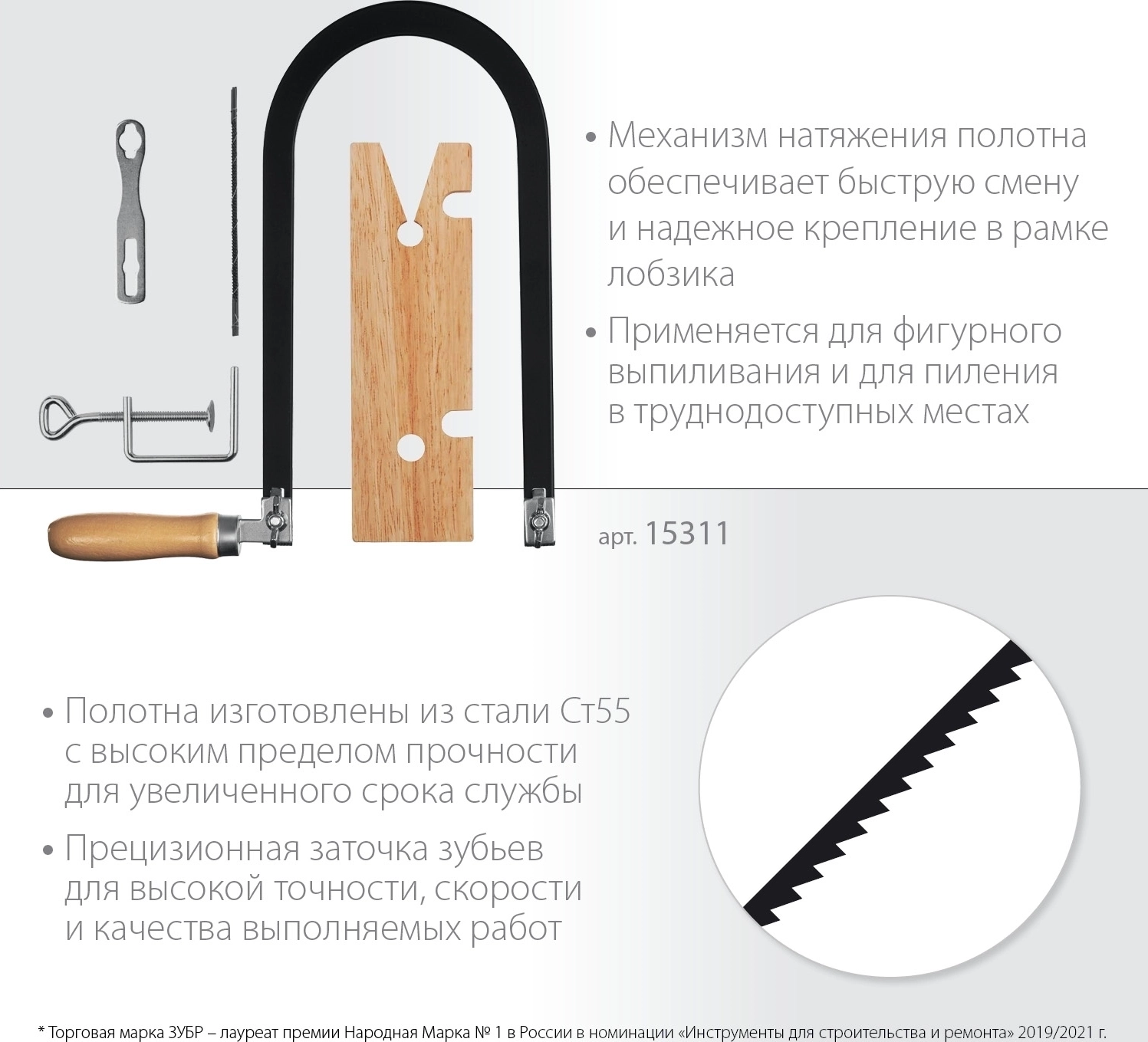 Для точного фигурного выпиливания в тонколистовых материалах: фанера, ДВП, пластиковые панели.