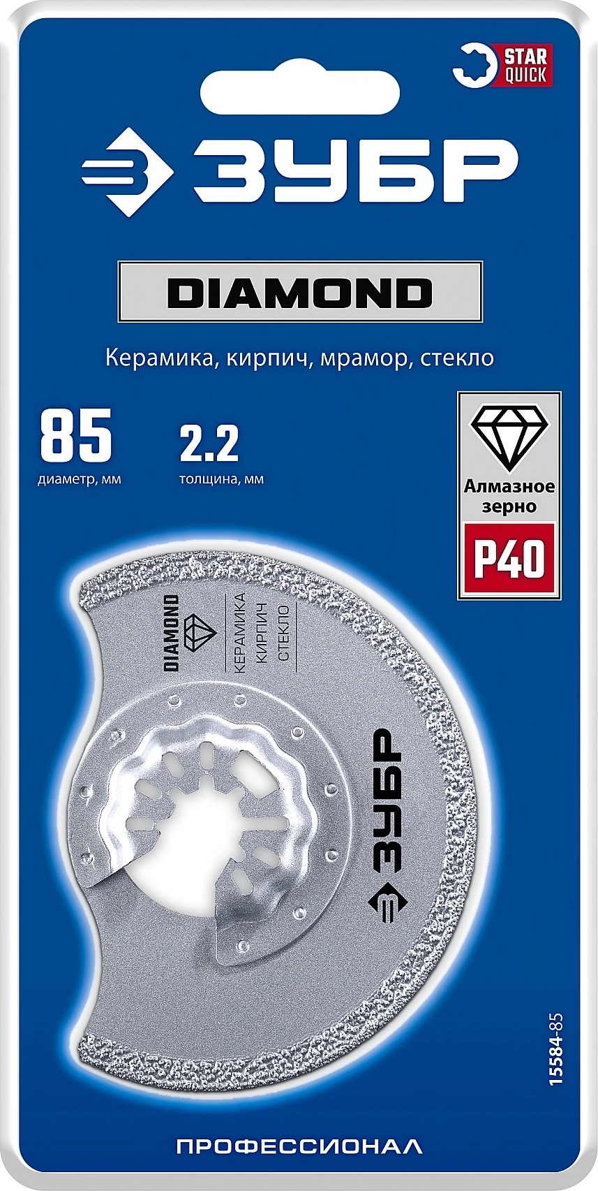 Полотно дисковое с алмазным зерном ЗУБР DIAMOND 85x2.2 мм Р40 для реза керамики, мрамора, стекла