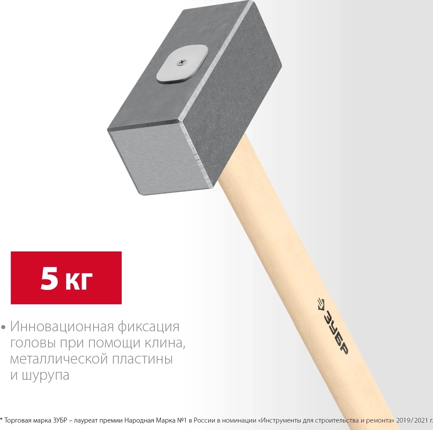 Надёжная кованая кувалда ЗУБР с деревянной рукояткой закалена в строгом соответствии с ГОСТ 11401-75. Инновационное крепление головы к рукоятке с помощью специального клина, стальной пластины и шурупа. Инструмент готов к тяжелым монтажным и демонтажным работам.