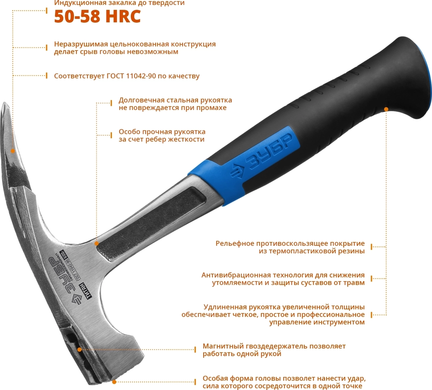 Цельнокованый молоток кровельщика ЗУБР Профессионал 600 г