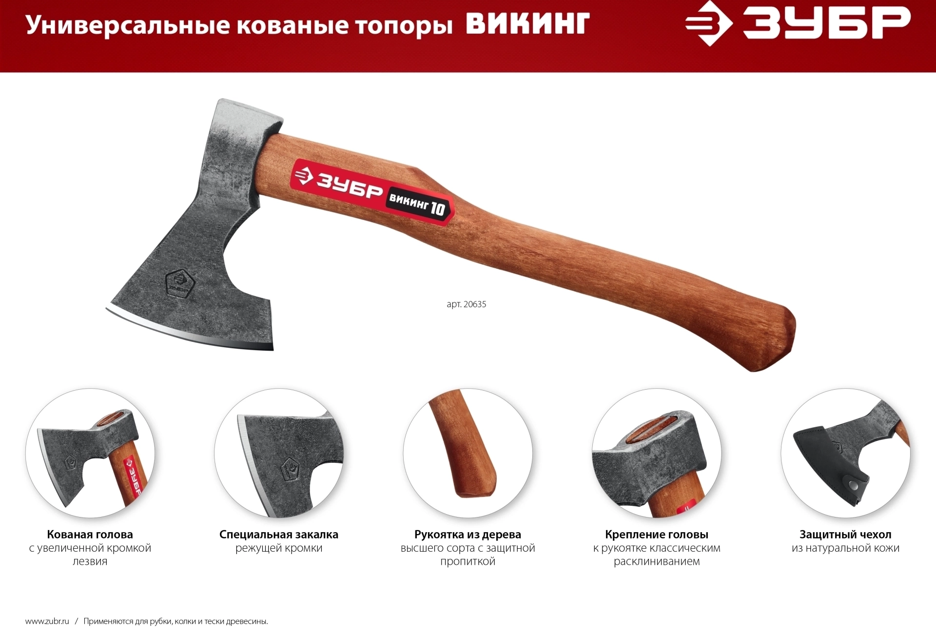 Универсальный кованый топор ЗУБР ВИКИНГ-10, 1100/1450 г, 500 мм