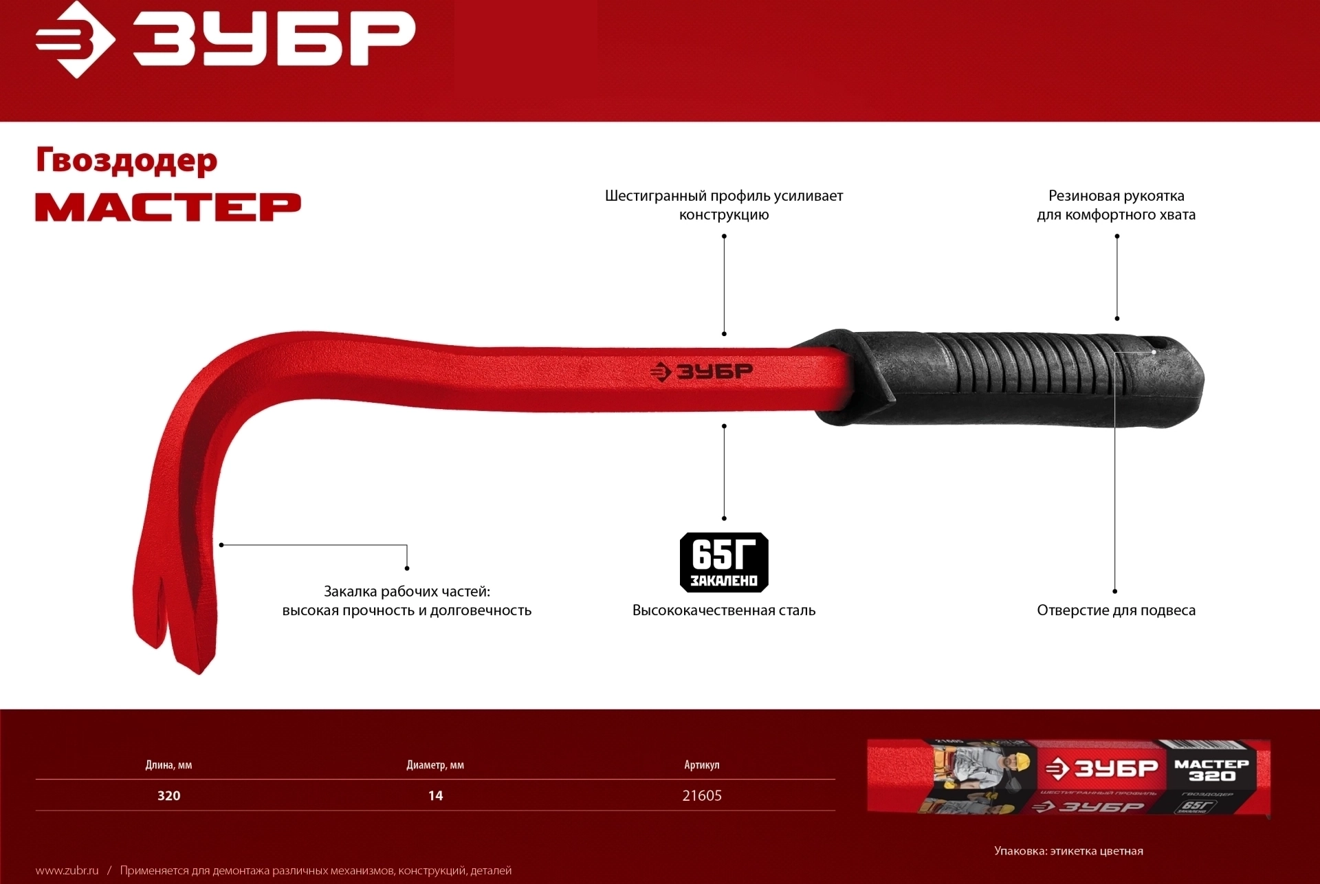 Профессиональный инструмент для демонтажных работ «ЗУБР» выдерживает длительные высокие нагрузки, обладает высоким ресурсом, имеет длительный срок службы и обеспечивает качественную работу.