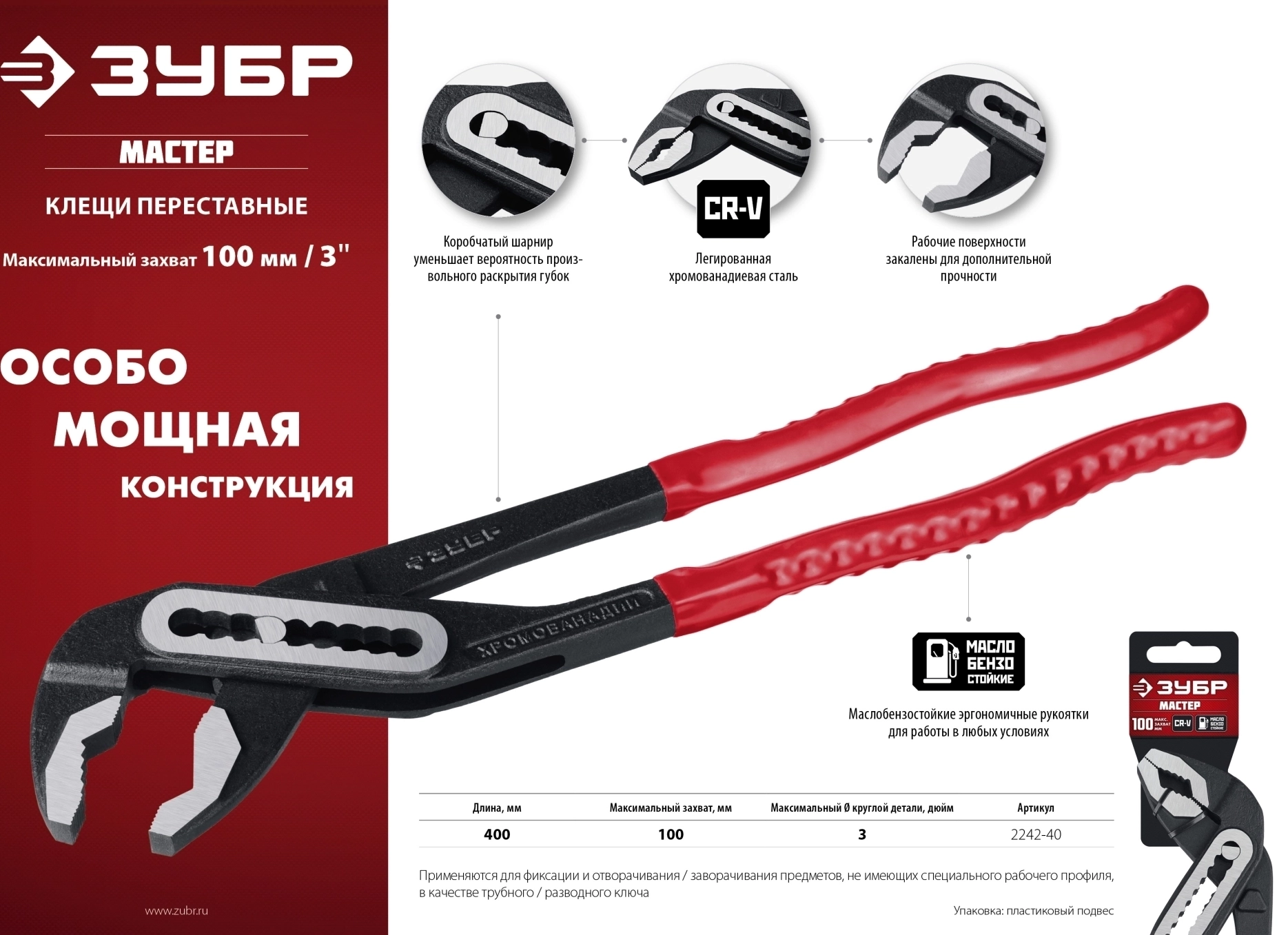 Переставные клещи ЗУБР 400 мм