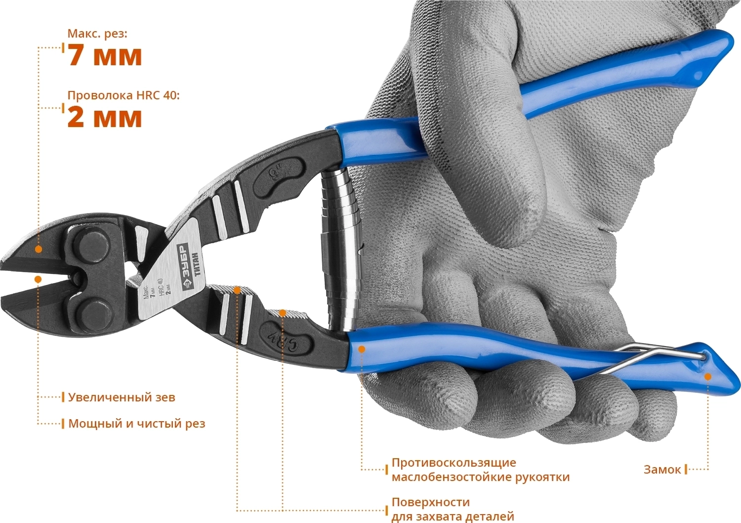 Для перекусывания болтов, металлических прутов и стальной проволоки, в том числе закаленной
