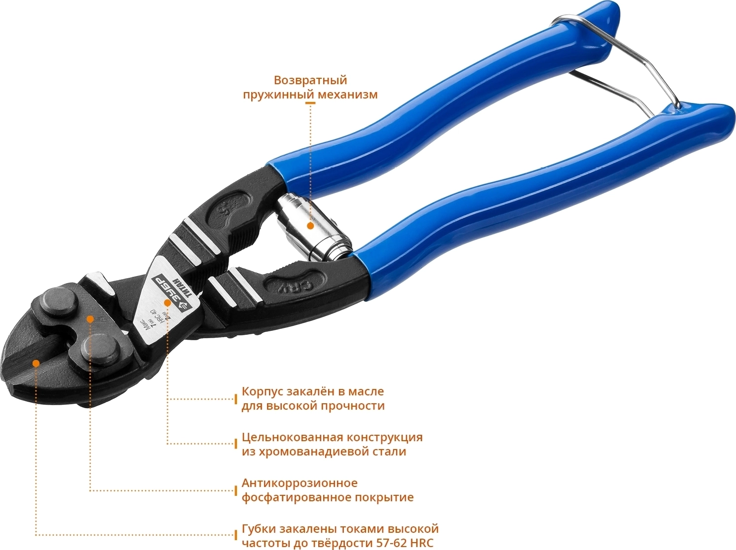 Компактный болторез ЗУБР Эксперт 220 мм, Cr-V