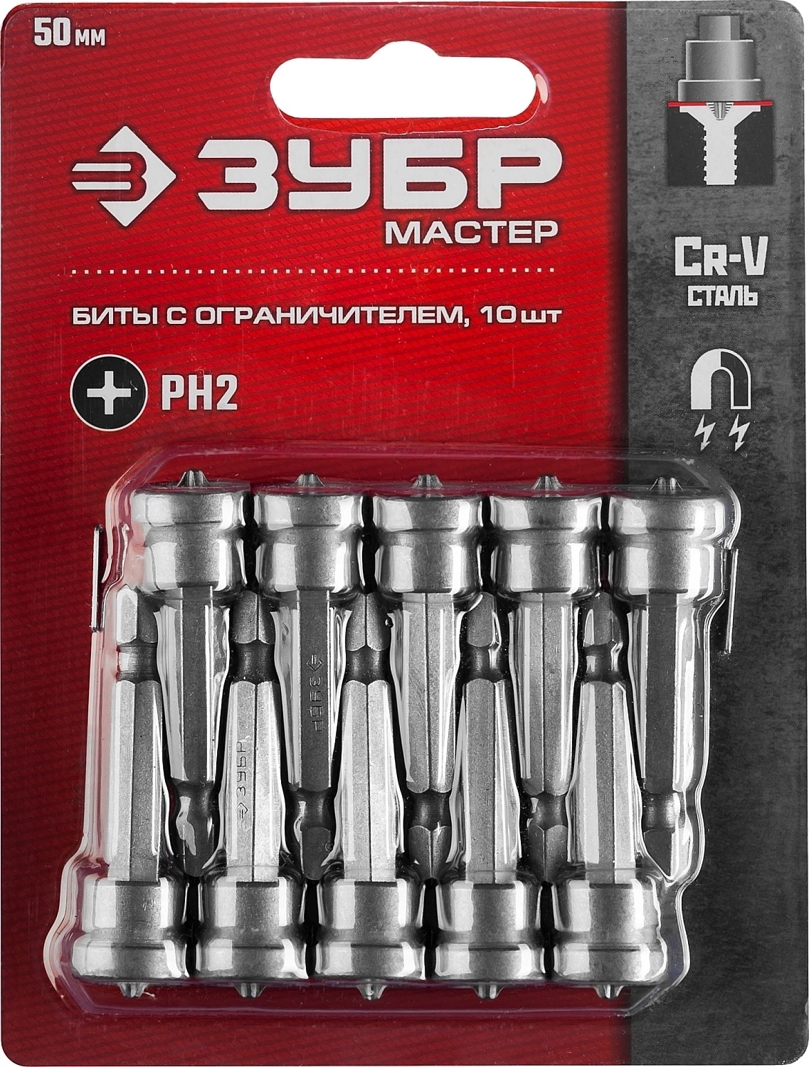 Биты с ограничителем ЗУБР 10 шт, PH2, 50 мм