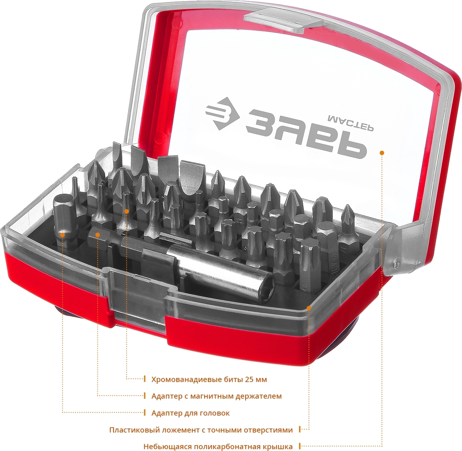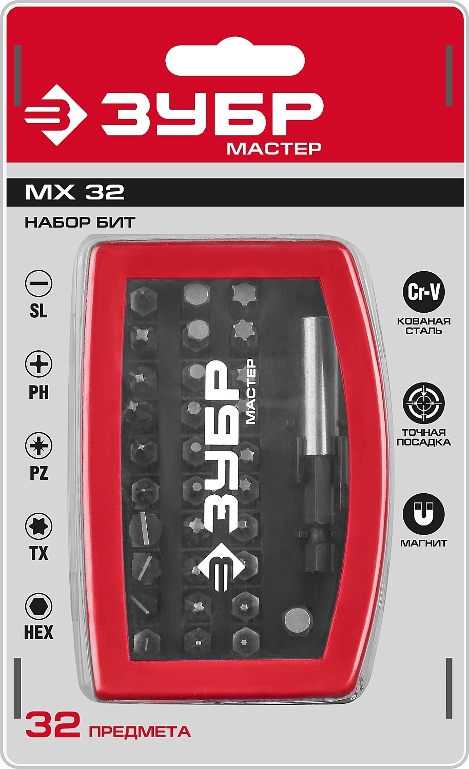 Набор бит с магнитным адаптером ЗУБР МХ-32, 32 шт