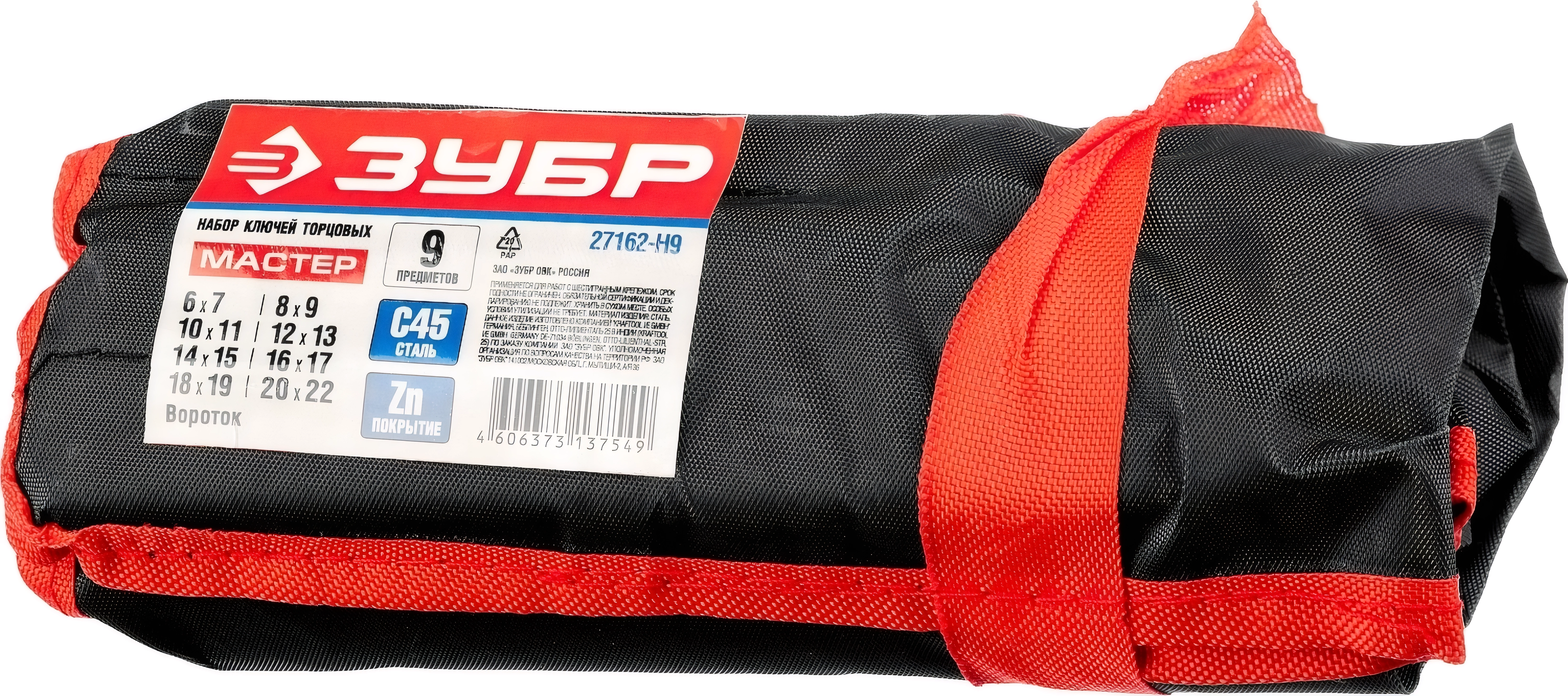 Набор торцовых трубчатых ключей ЗУБР 9 предм., 6 - 22 мм