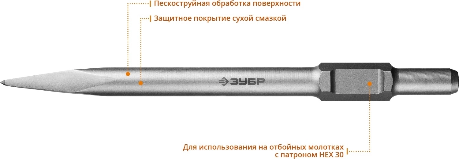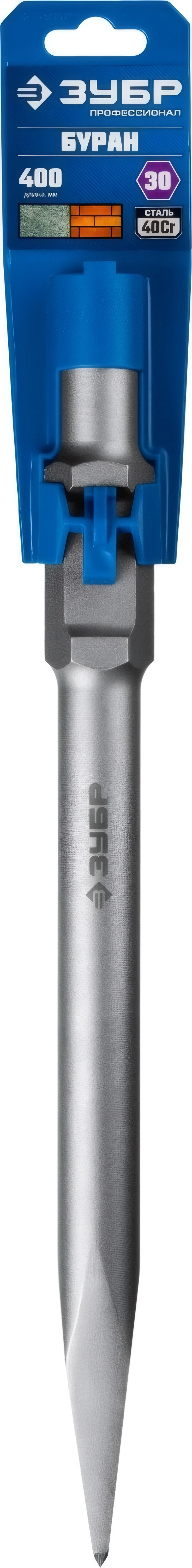 Пикообразное зубило ЗУБР БУРАН, 400 мм, HEX 30