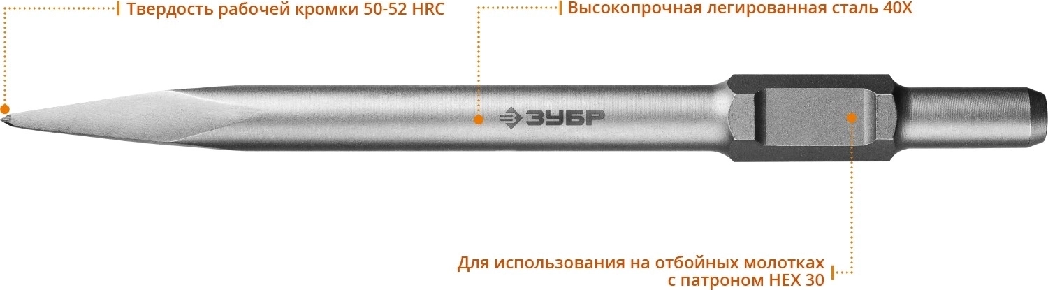 Пикообразное зубило ЗУБР БУРАН, 600 мм, HEX 30
