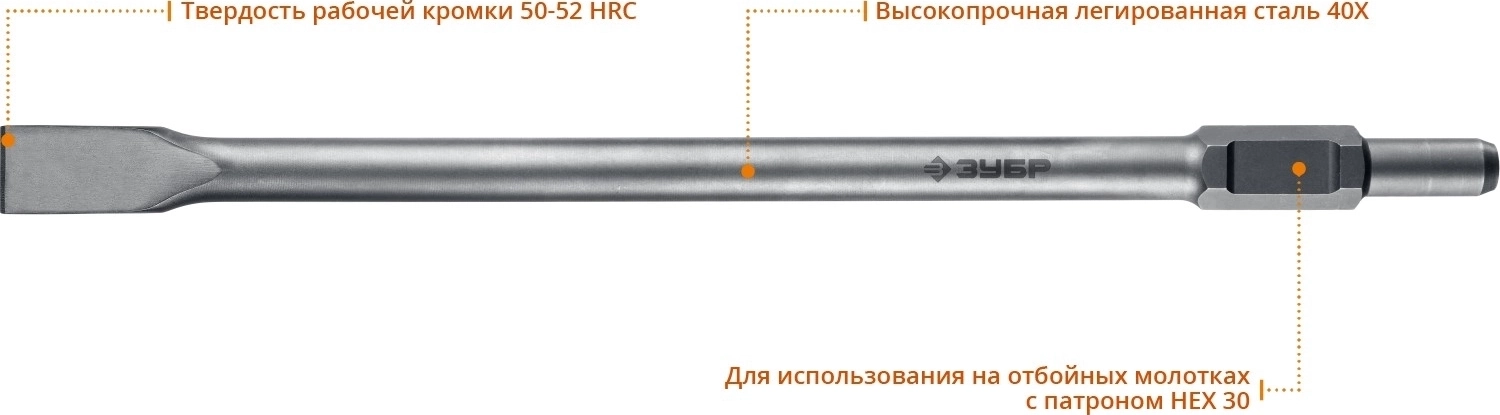 Плоское зубило ЗУБР БУРАН, 35 х 600 мм, HEX 30