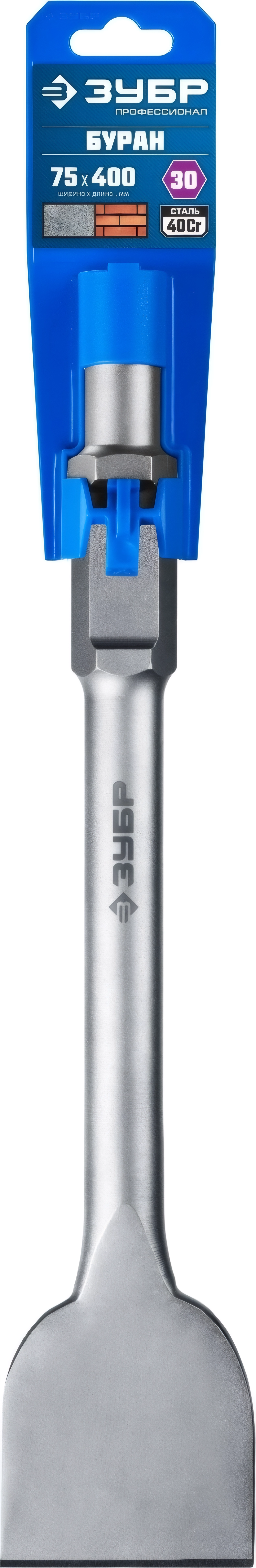 Лопаточное зубило ЗУБР БУРАН, 75 х 400 мм, HEX 30