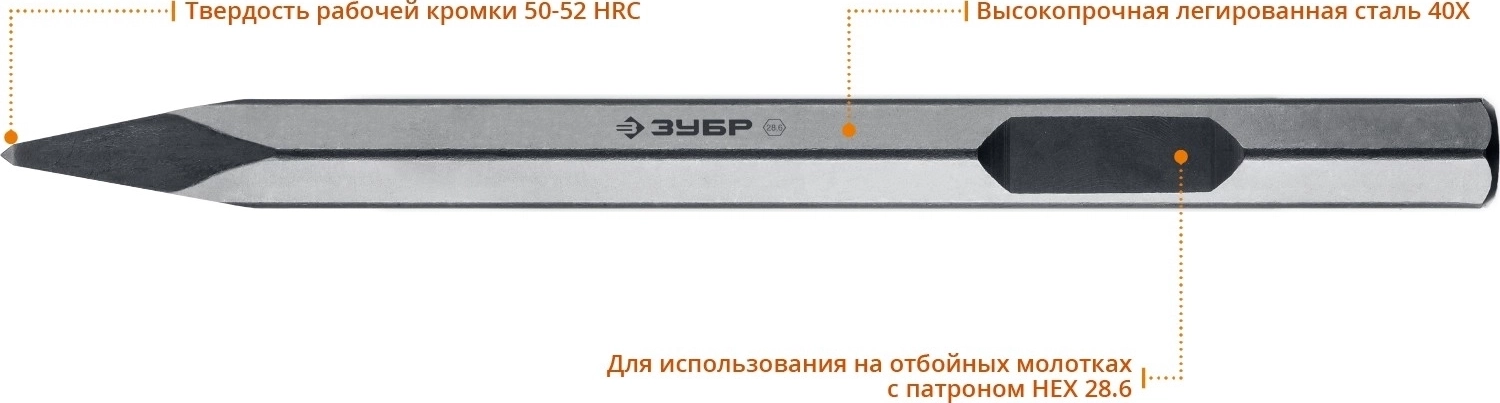 Пикообразное зубило ЗУБР БУРАН, 400 мм, HEX 28