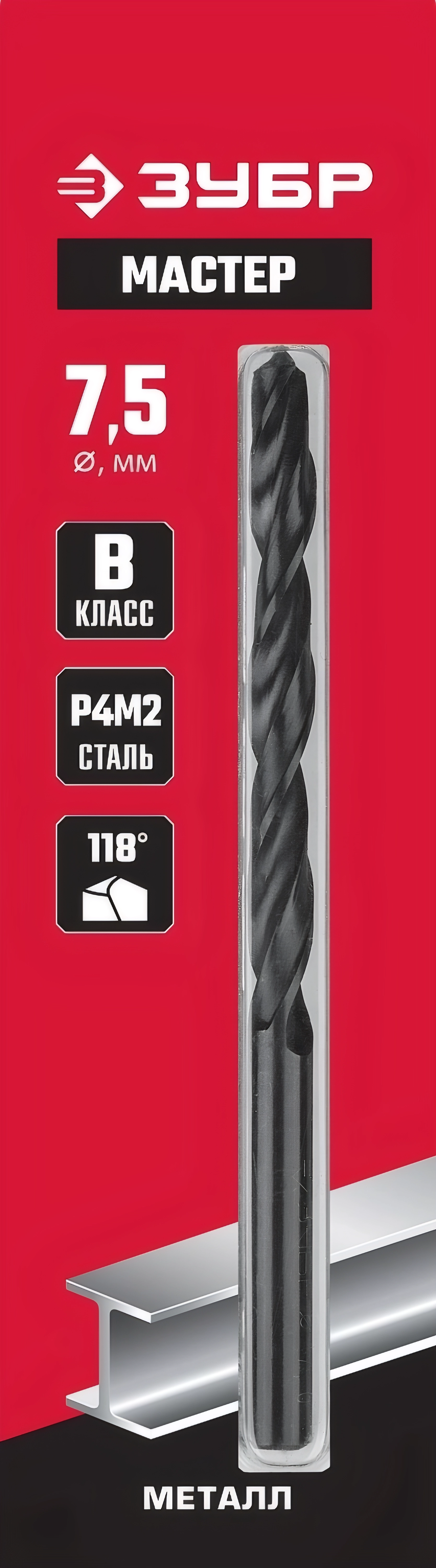Сверло по металлу ЗУБР 7.5 х 109 мм, сталь Р4М2, класс В