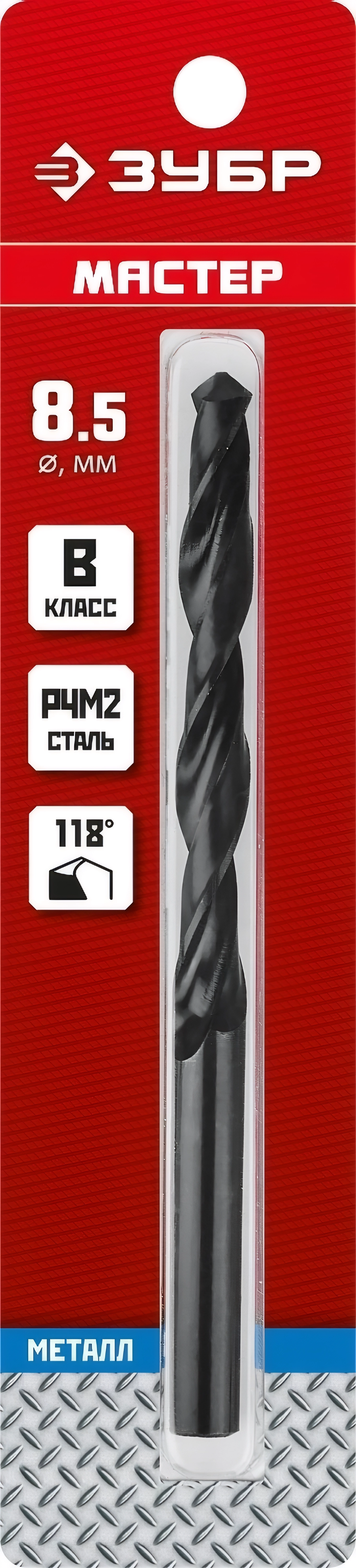 Сверло по металлу ЗУБР 8.5 х 117 мм, сталь Р4М2, класс В