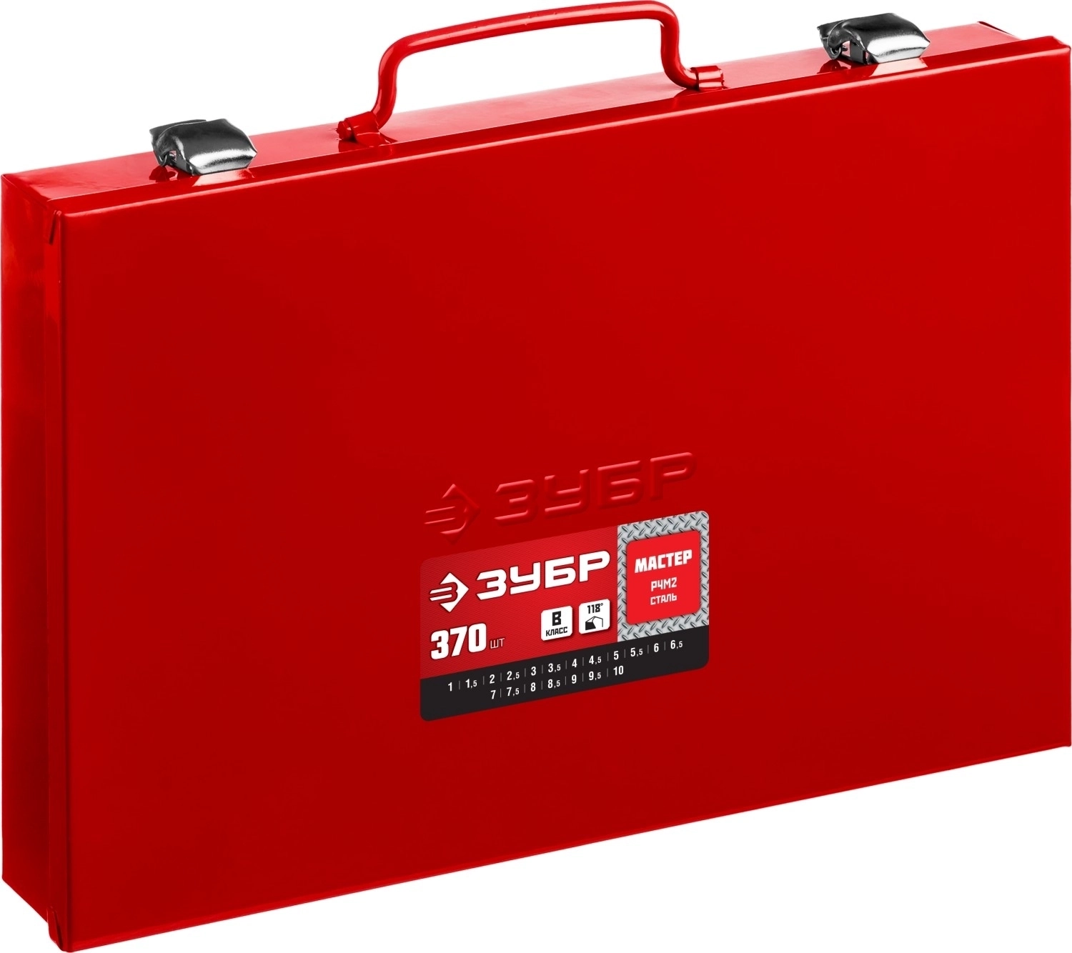 Набор сверл по металлу ЗУБР 370 шт, (1-10 мм), сталь Р4М2, класс В, мет.бокс