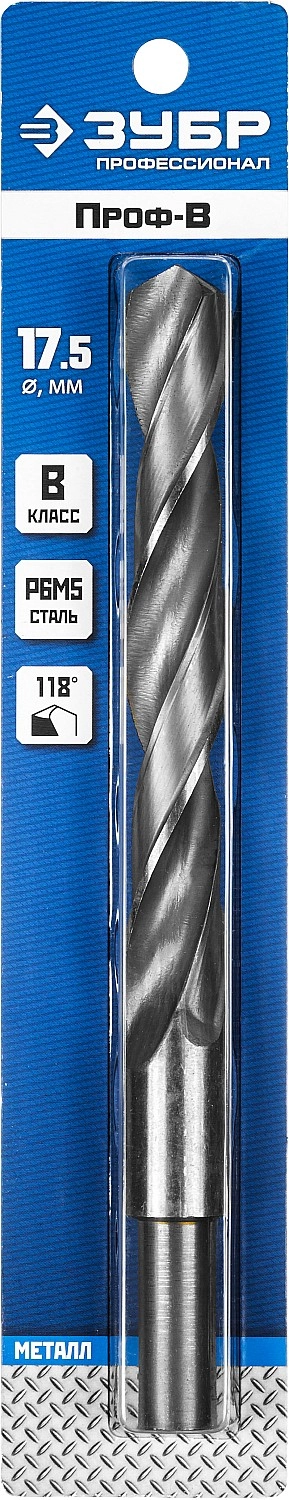 Профессионал ЗУБР ПРОФ-В, 17.5 х 191 мм, сталь Р6М5, класс В, проточенный хвостовик, сверло по металлу