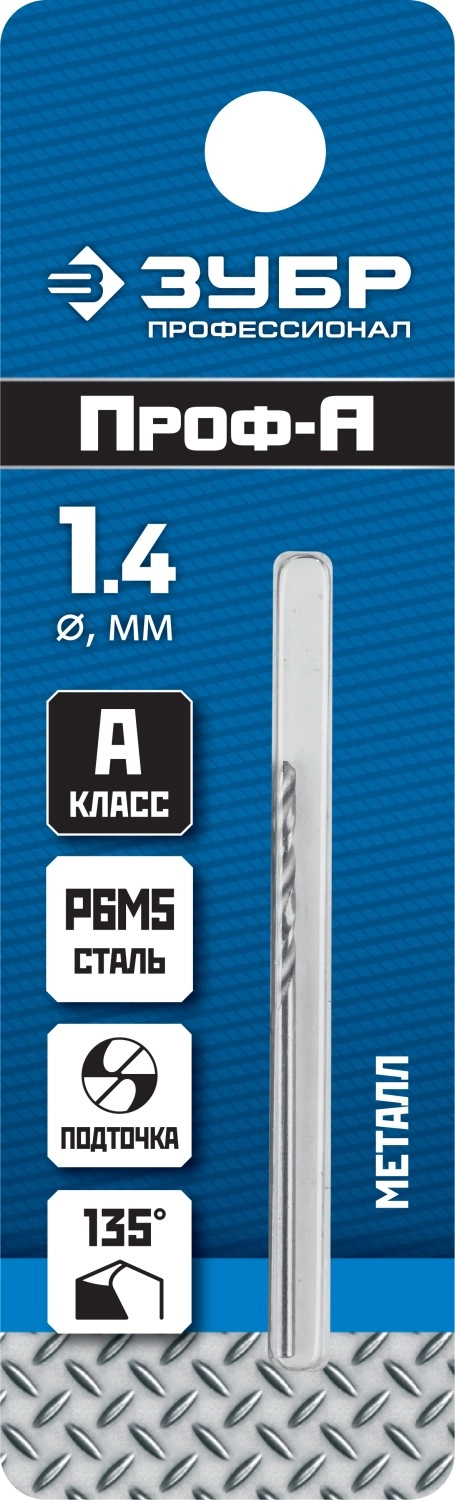 Сверло по металлу ЗУБР ПРОФ-А, 1.4 х 40 мм, сталь Р6М5, класс А