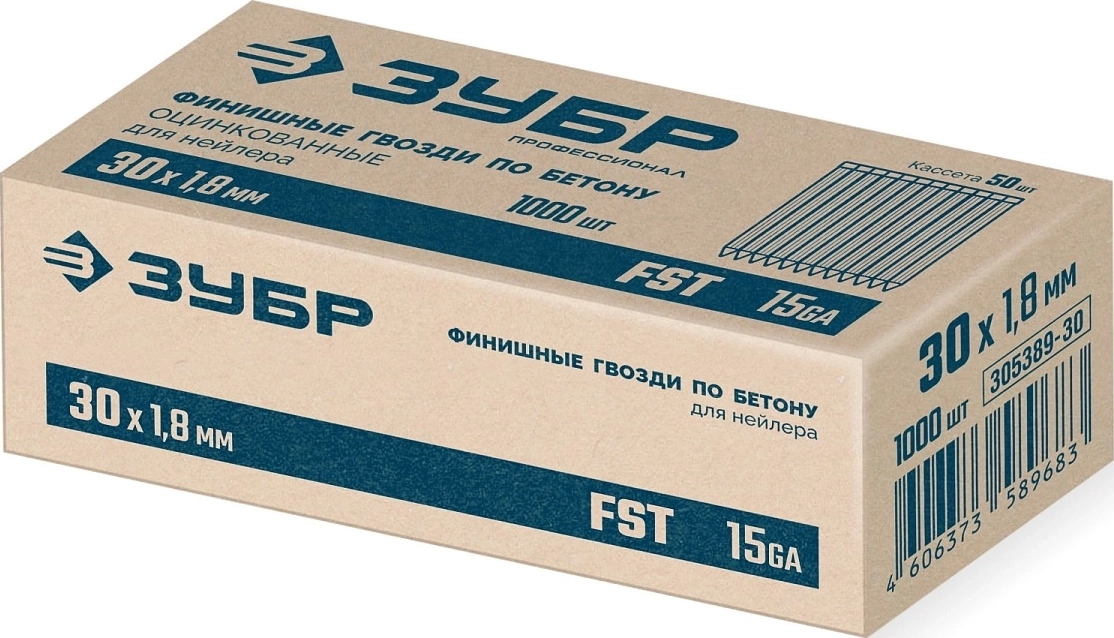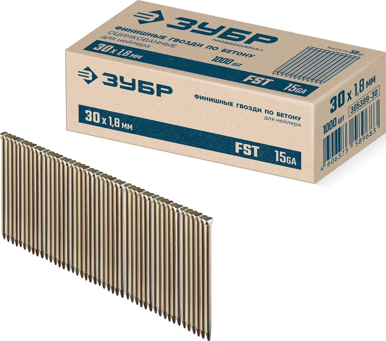 1000 шт ЗУБР FST 30 х 1.8 мм, финишные гвозди по бетону оцинкованные, калибр 15GA