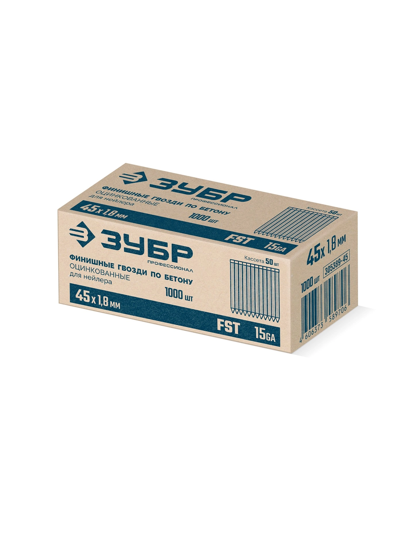 1000 шт ЗУБР FST 45 х 1.8 мм, финишные гвозди по бетону оцинкованные, калибр 15GA