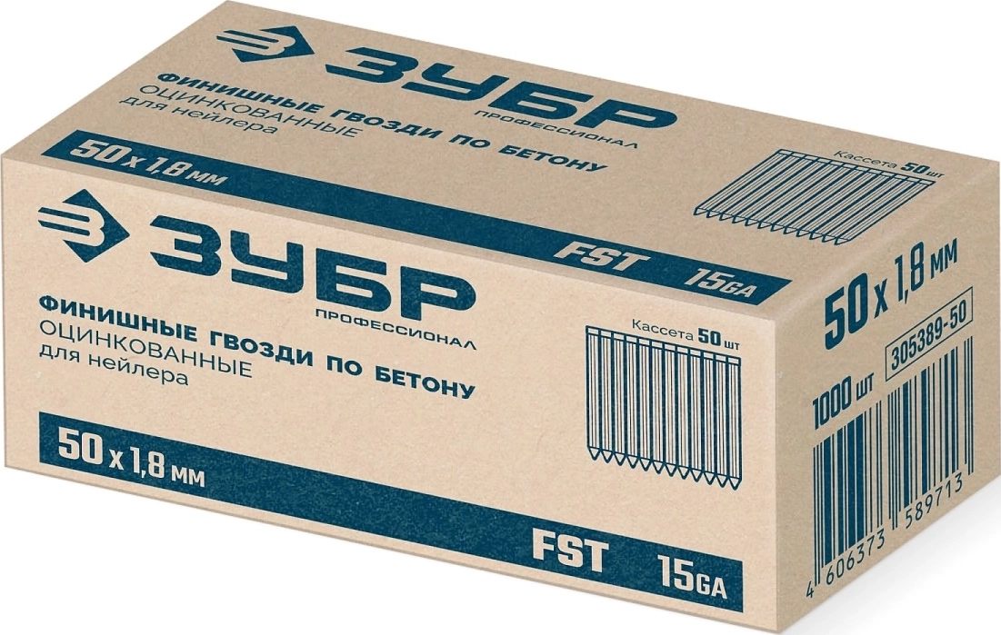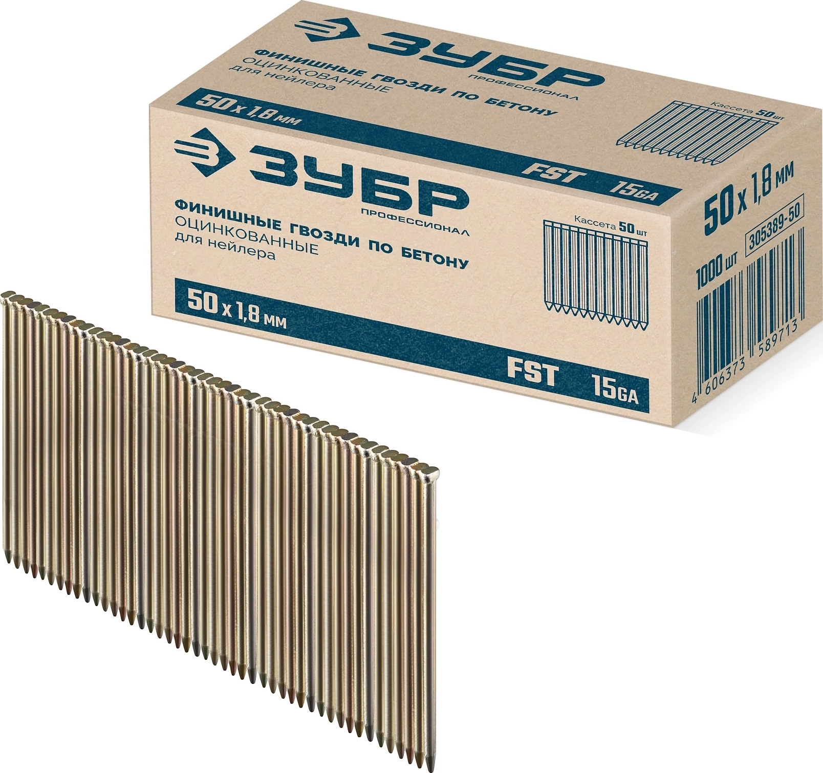 1000 шт ЗУБР FST 50 х 1.8 мм, финишные гвозди по бетону оцинкованные, калибр 15GA