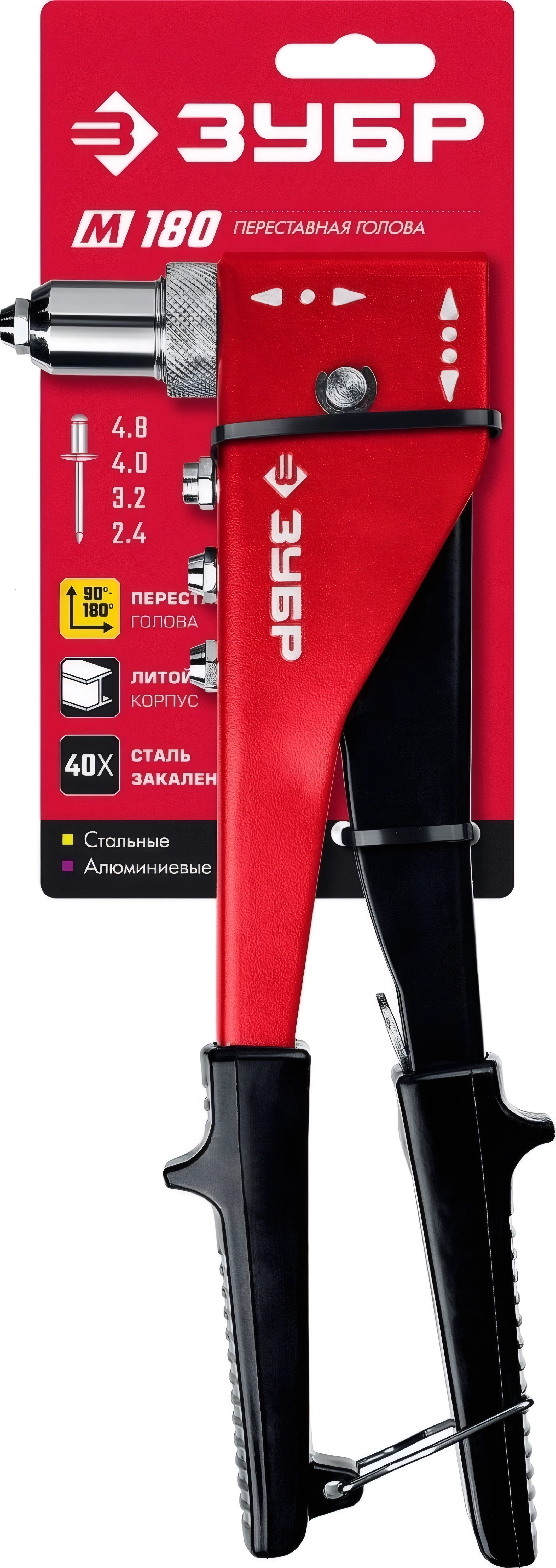 Переставной заклёпочник ЗУБР M-180, 90 - 180°, 2.4 - 4.8 мм, 270 мм