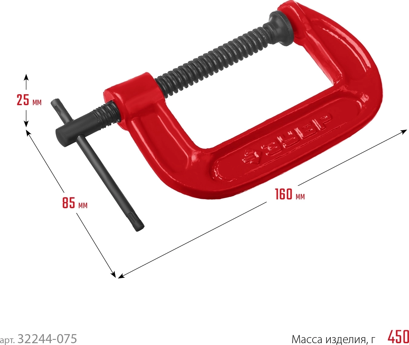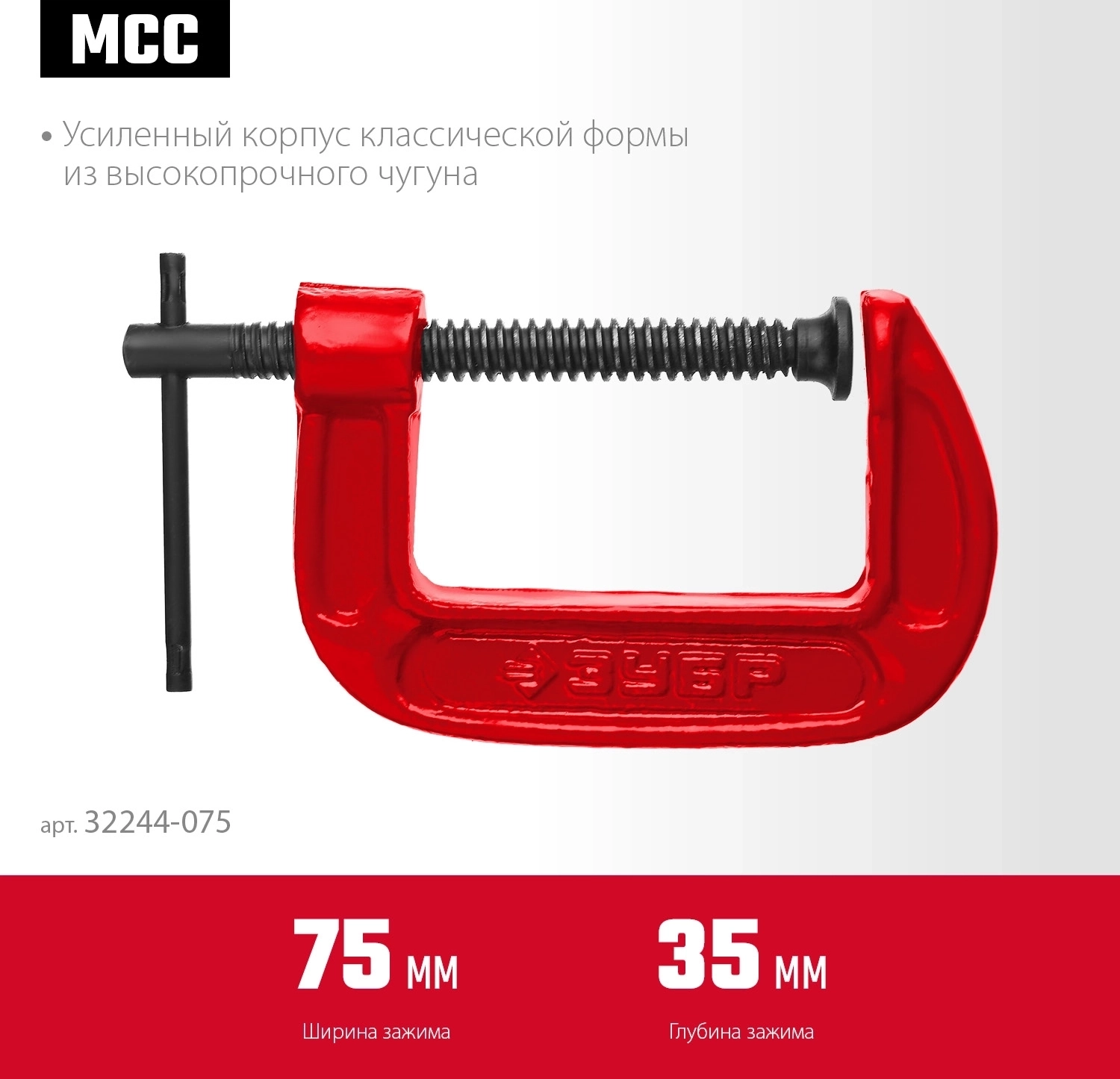 Чугунная струбцина ЗУБР МСС-80, 75 мм