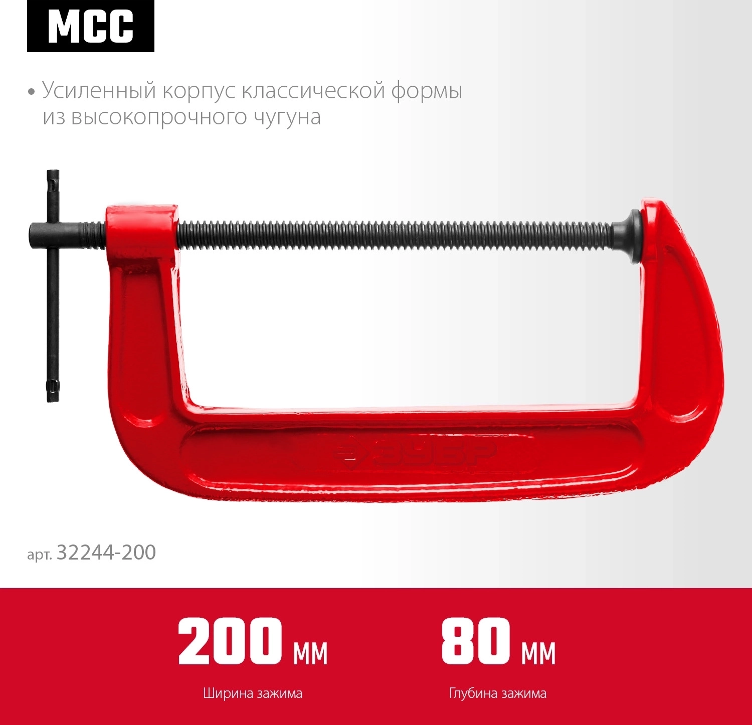 Чугунная струбцина ЗУБР МСС-200, 200 мм