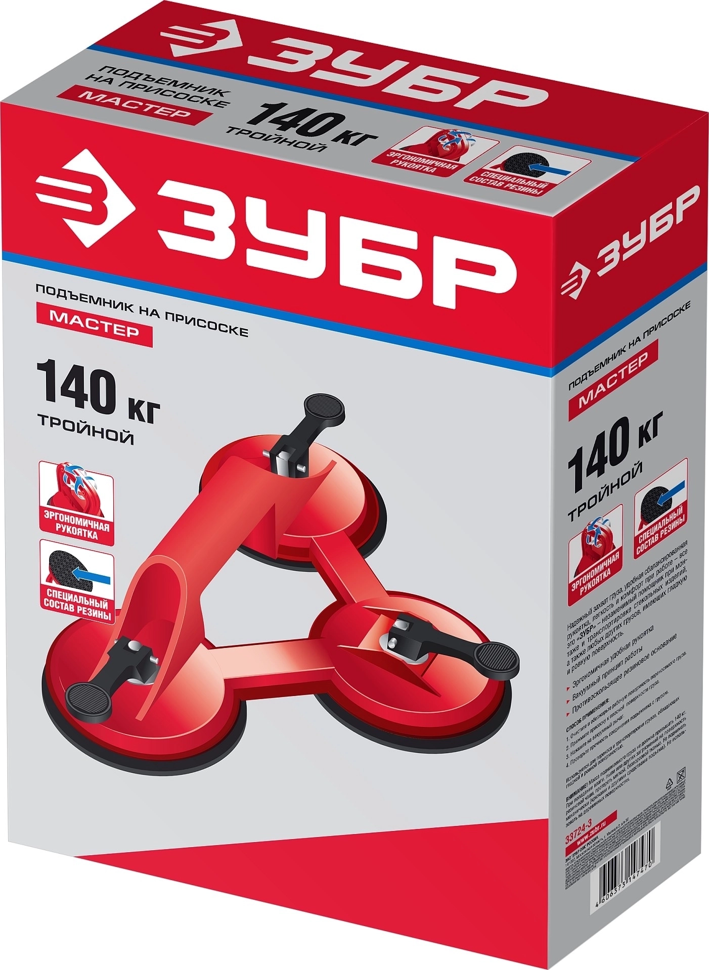 Тройной пластмассовый подъемник ЗУБР 140 кг, на присоске