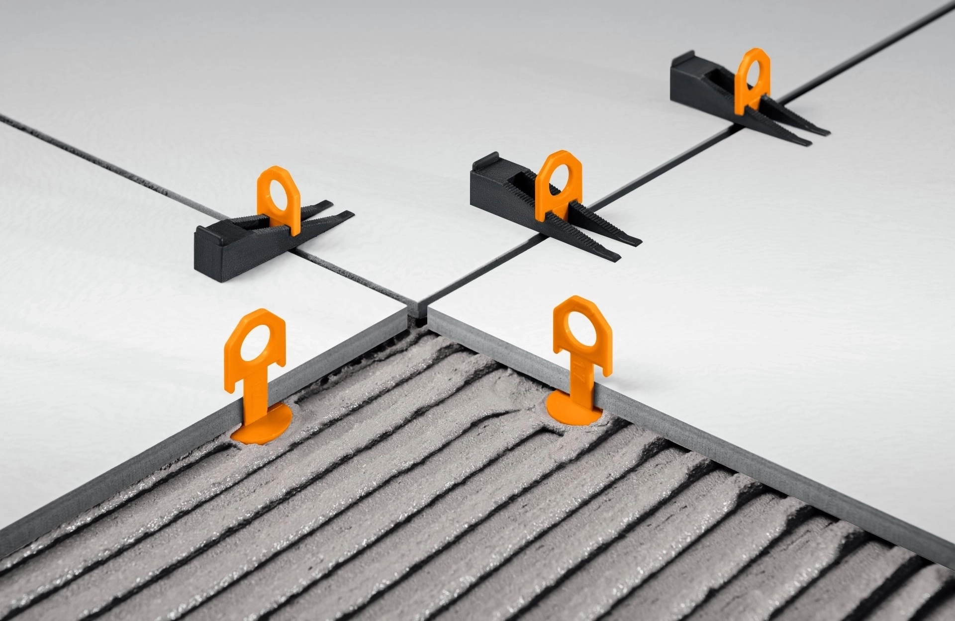 Изготовлен из высокопрочного пластика, что предотвращает растягивание во время высыхания клеевого состава и обеспечивает прочную фиксацию плитки. Имеет «технический шов» у основания, что обеспечивает точный отрыв у самого основания зажима. Место сцепления с клином сделано острым конусом, что гарантирует прочную фиксацию плитки.
