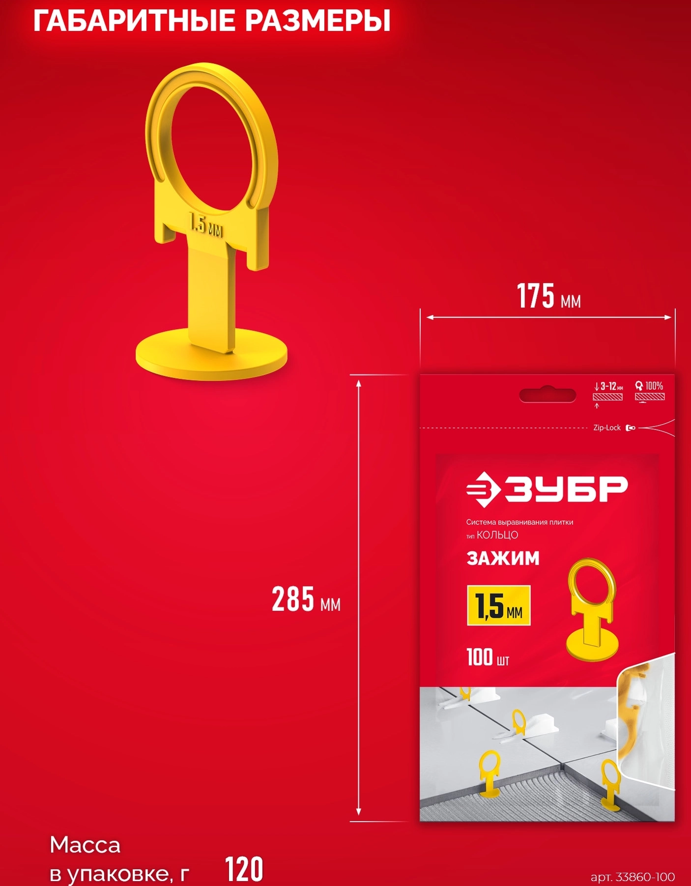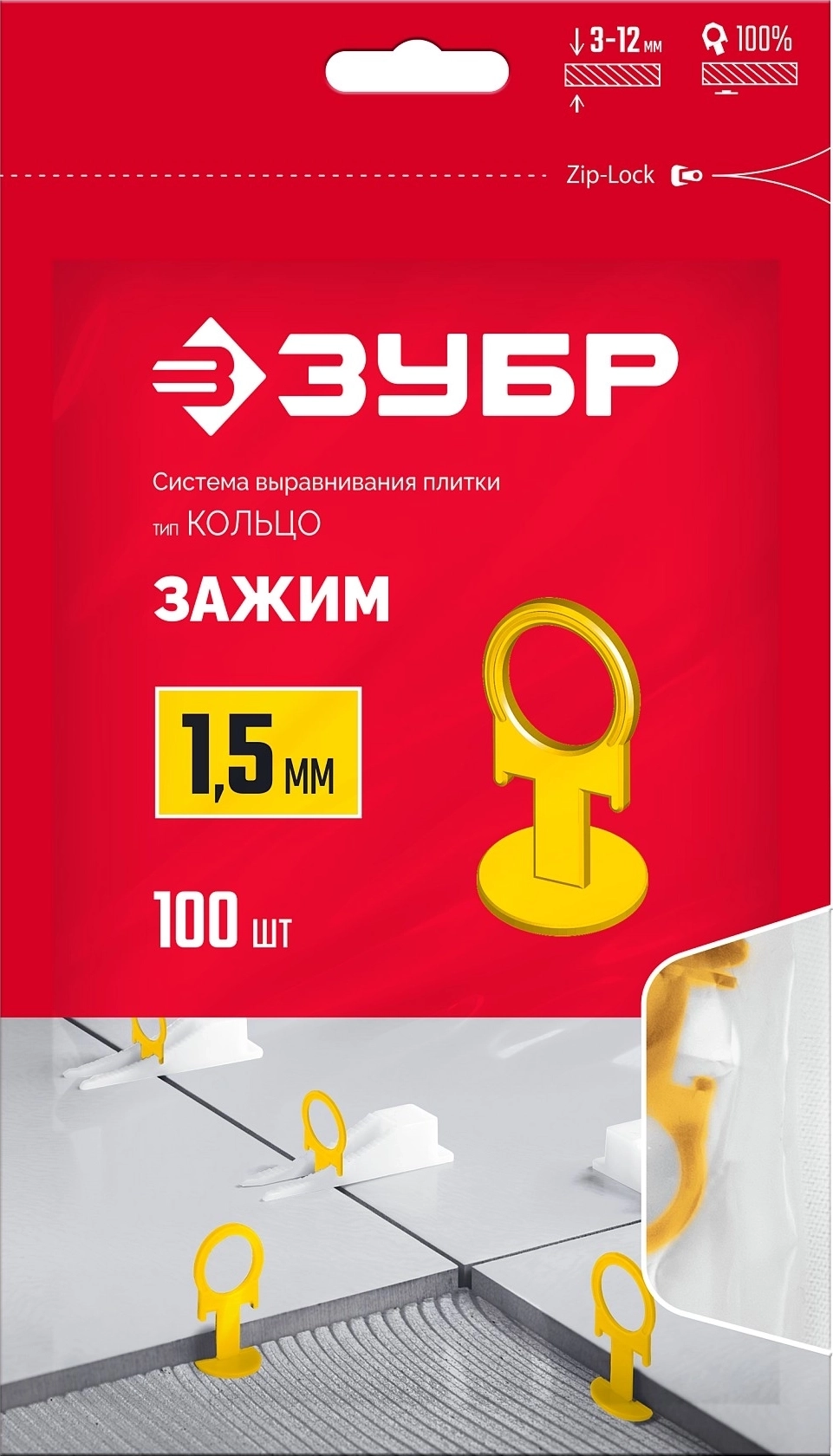 Система выравнивания плитки ЗУБР КОЛЬЦО, 1,5 мм, зажим, 100 шт