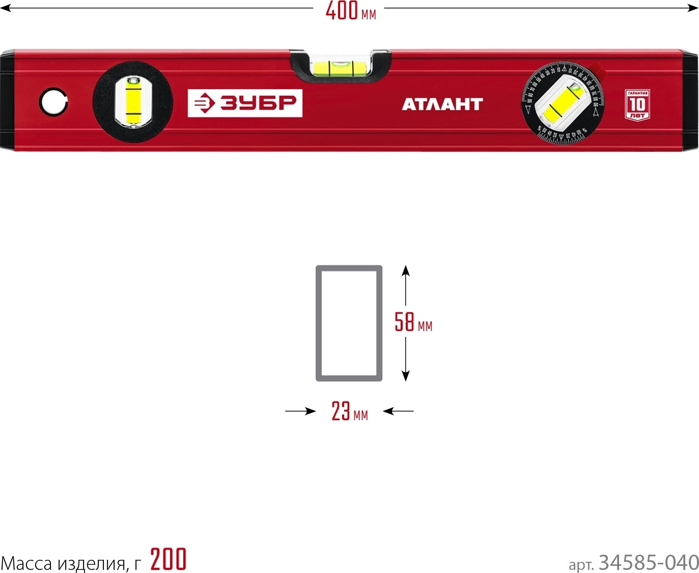 Уровень с усиленным профилем ЗУБР АТЛАНТ, 400 мм