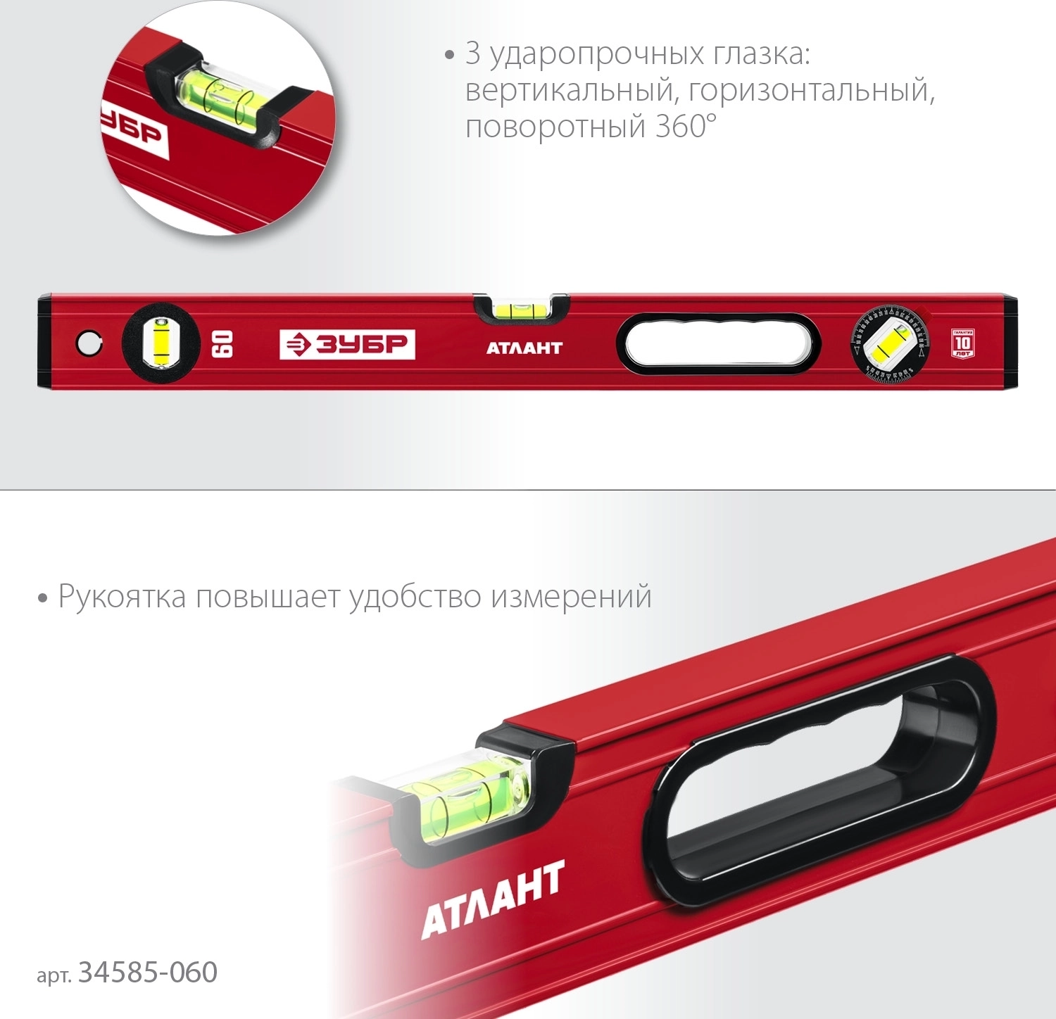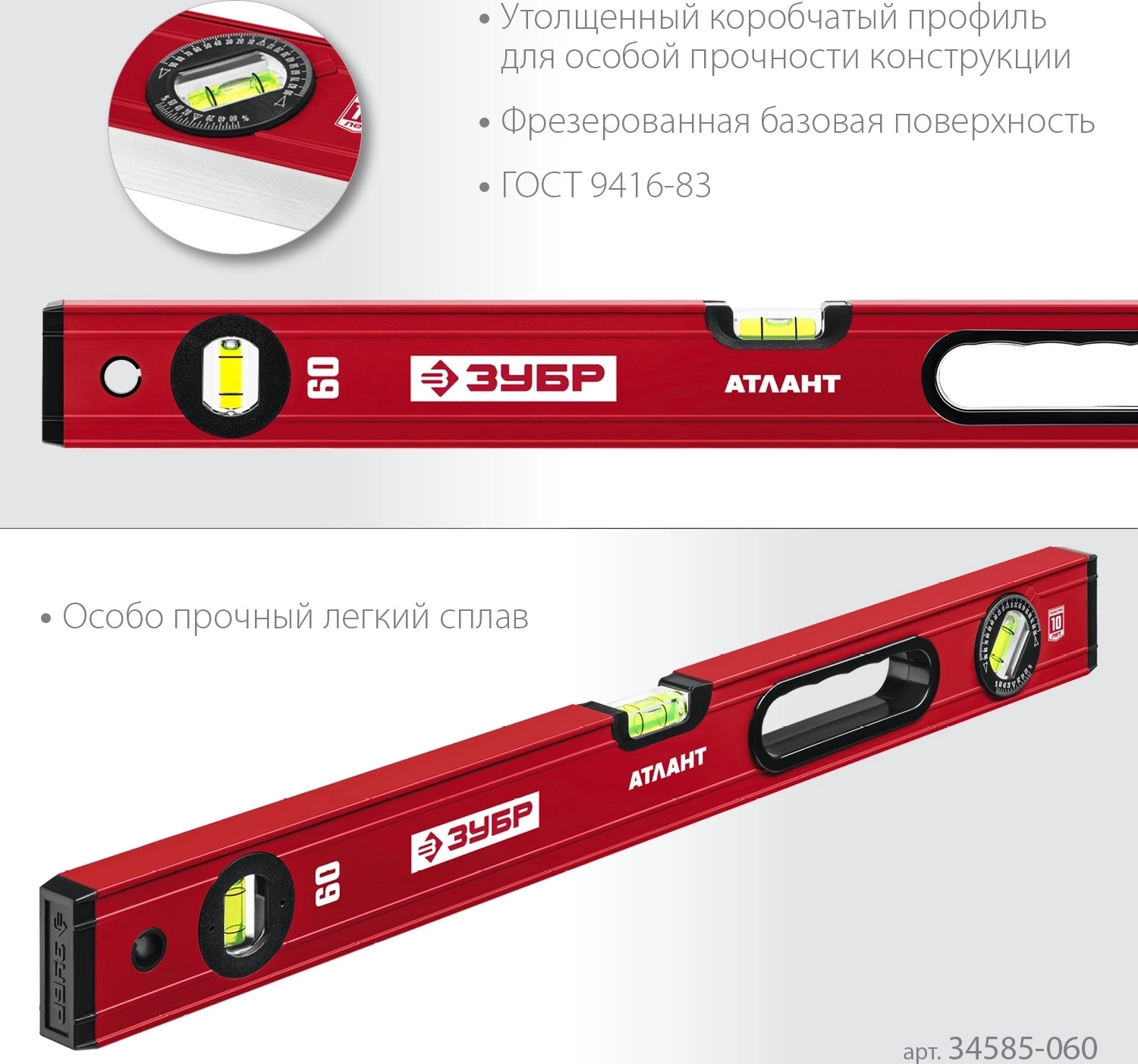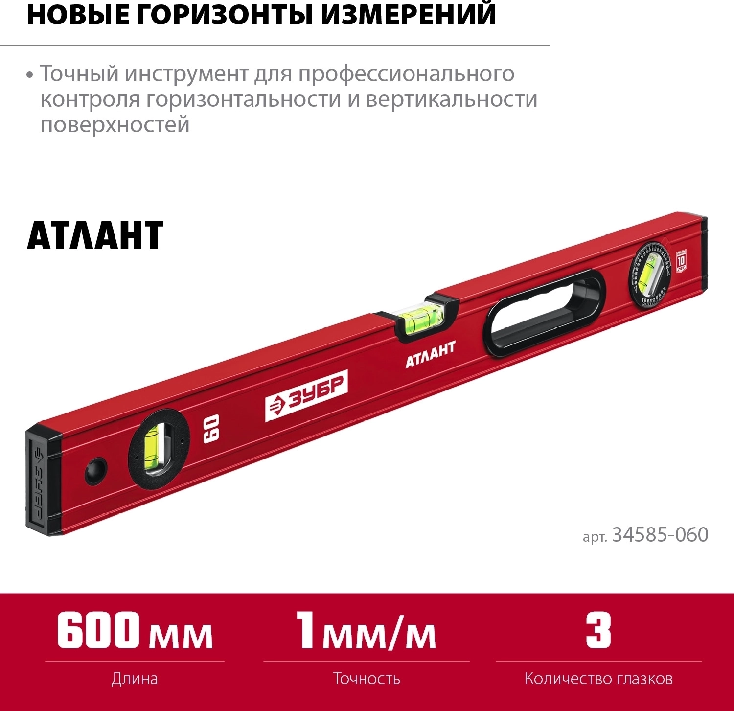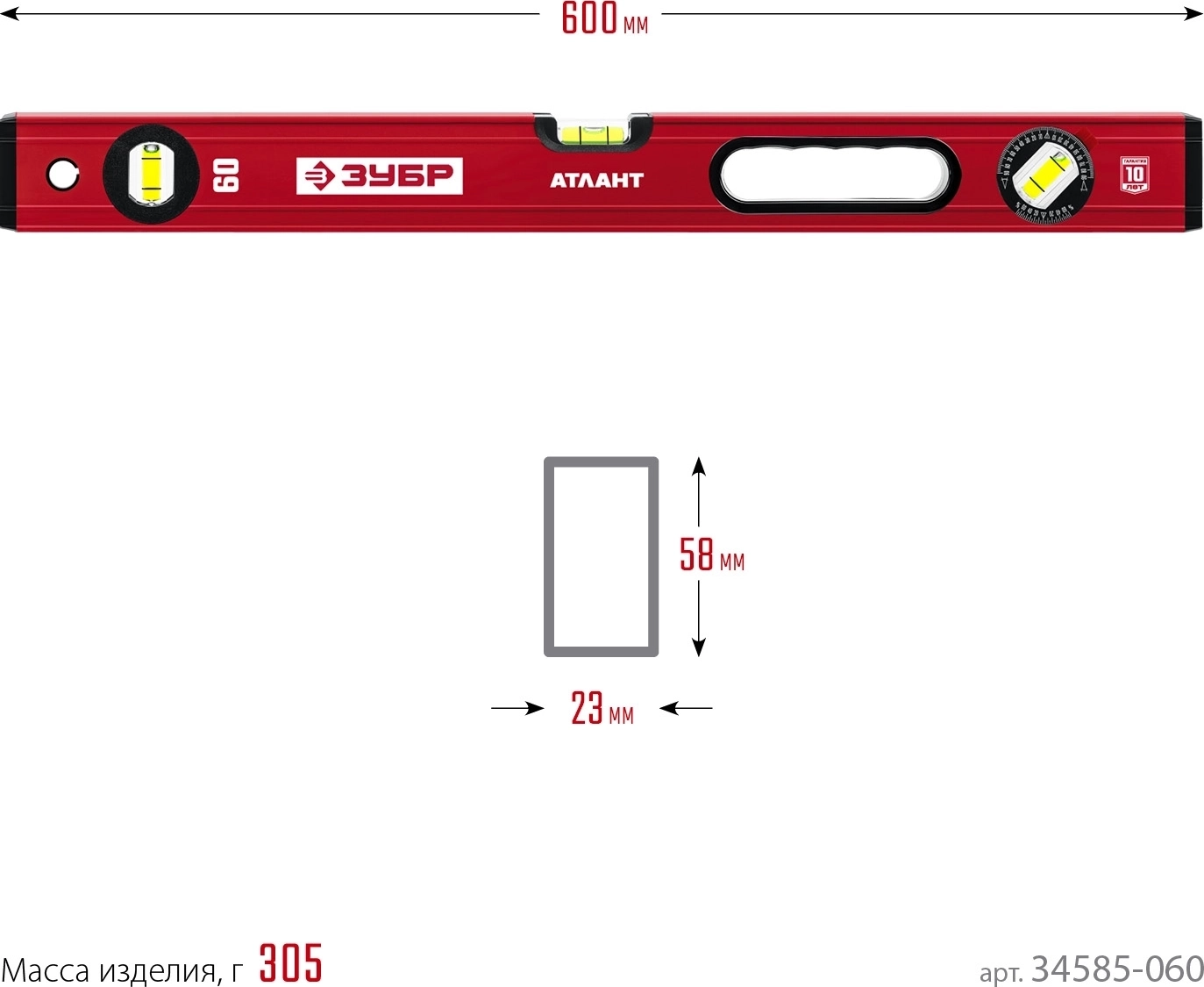 Уровень с усиленным профилем ЗУБР АТЛАНТ, 600 мм