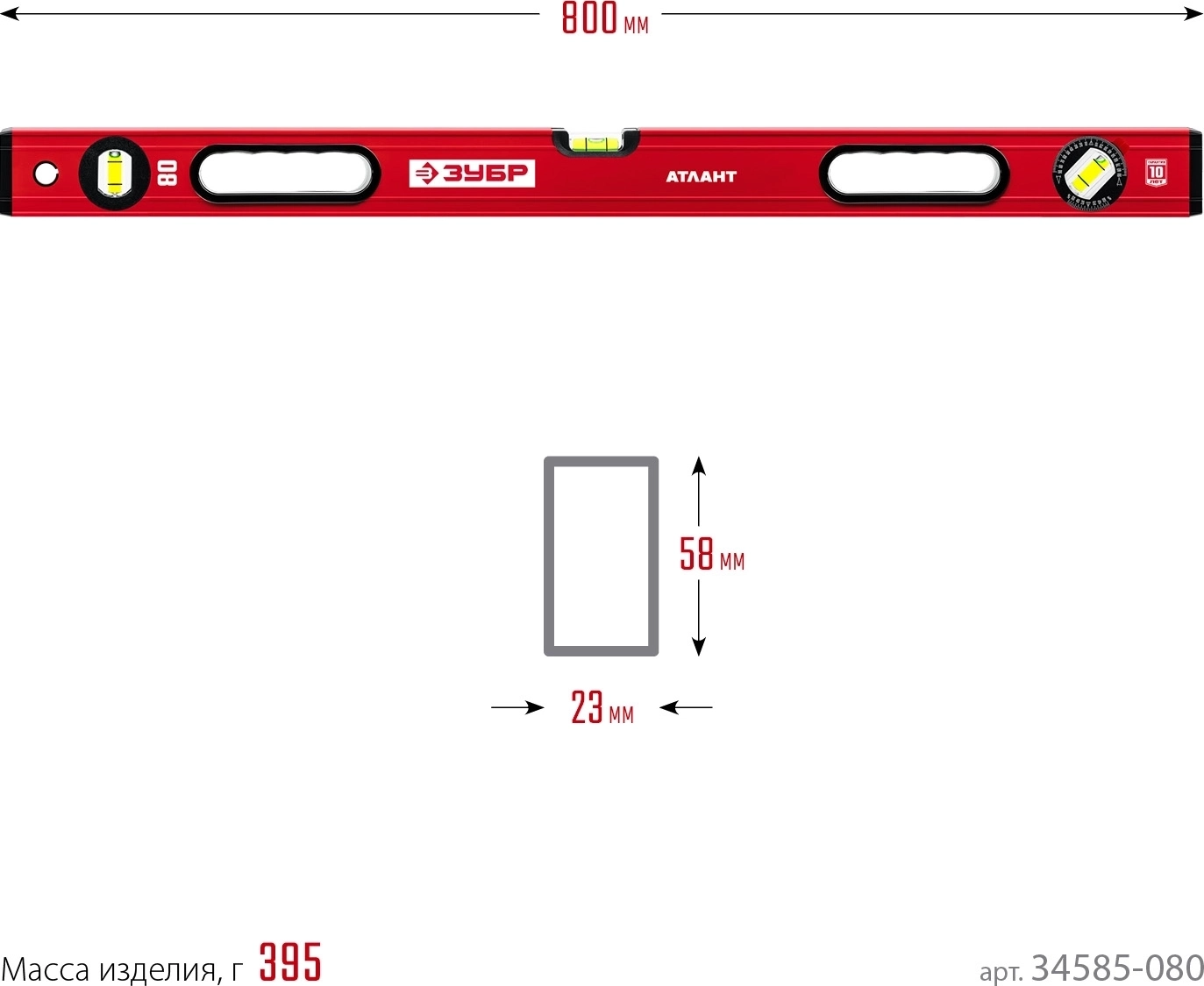 Уровень с усиленным профилем ЗУБР АТЛАНТ, 800 мм