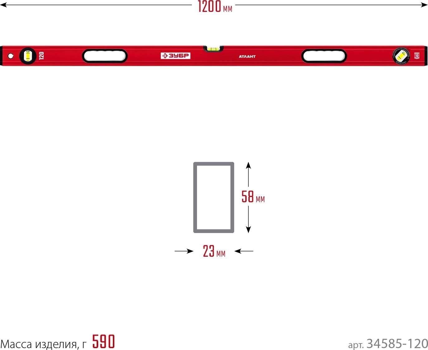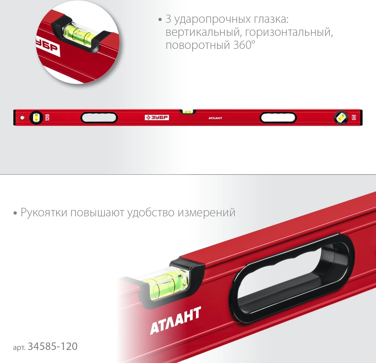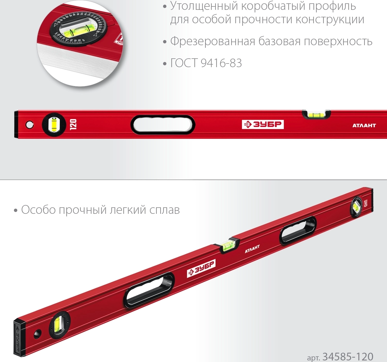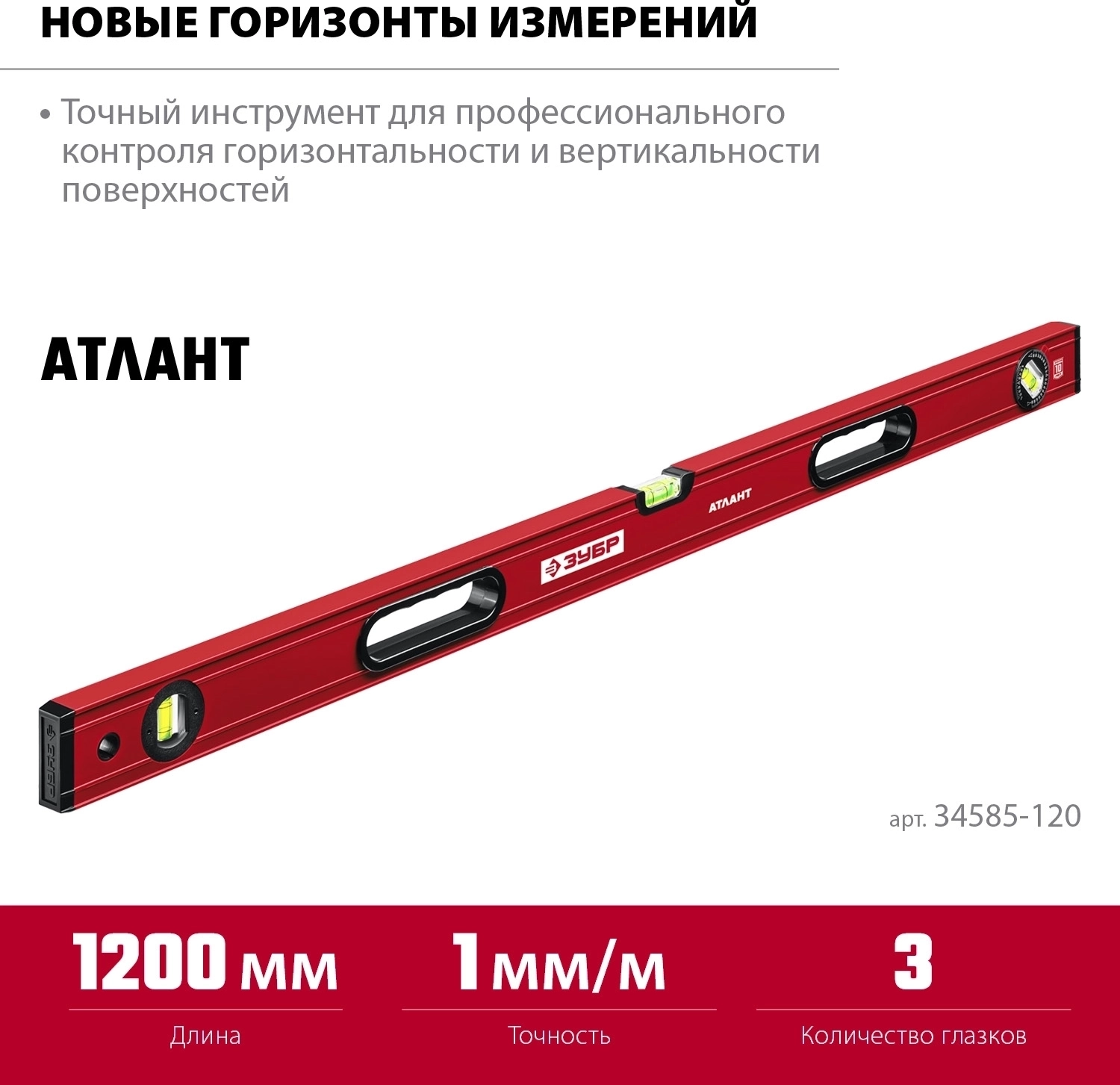 Уровень с усиленным профилем ЗУБР АТЛАНТ, 1200 мм