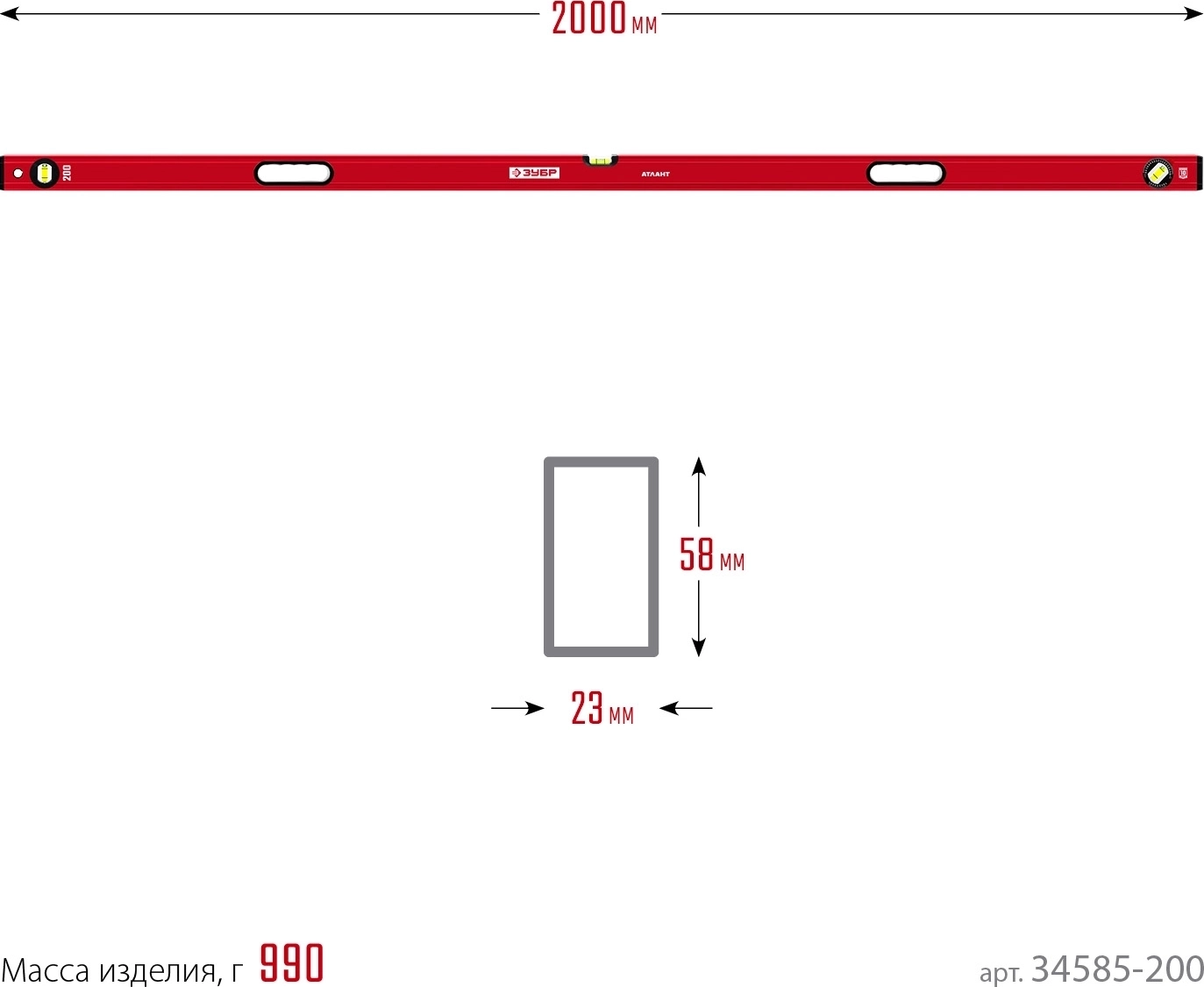 Уровень с усиленным профилем ЗУБР АТЛАНТ, 2000 мм