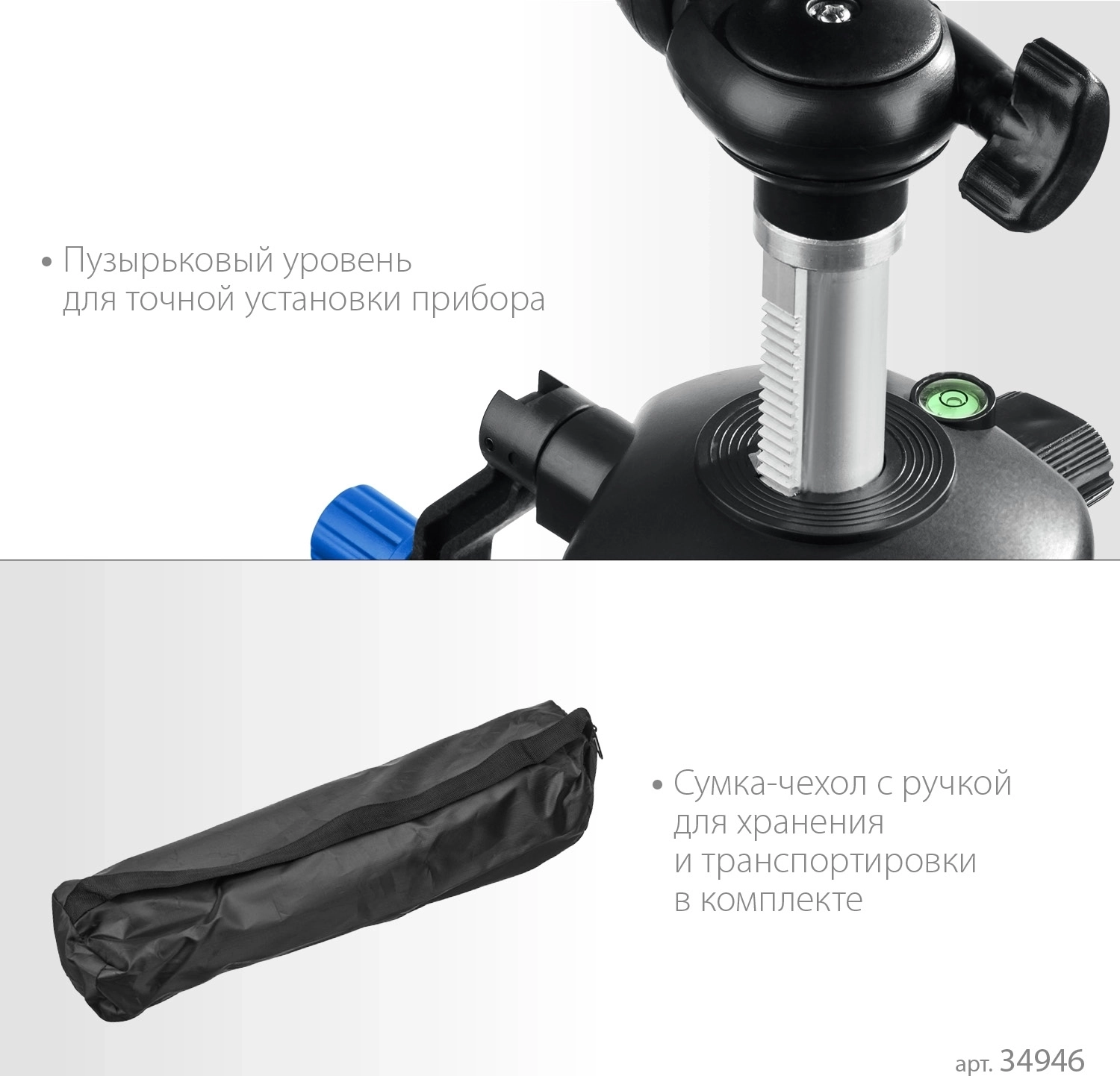 Профессиональный аксессуар для работы с лазерным, оптическим и фотоинструментом. Прибор можно точно установить на нужной высоте при помощи выдвижной колонки. Выполнен из алюминиевого сплава, благодаря чему имеет небольшой вес. А за счёт малого размера штатив легко носить и легко с ним работать.