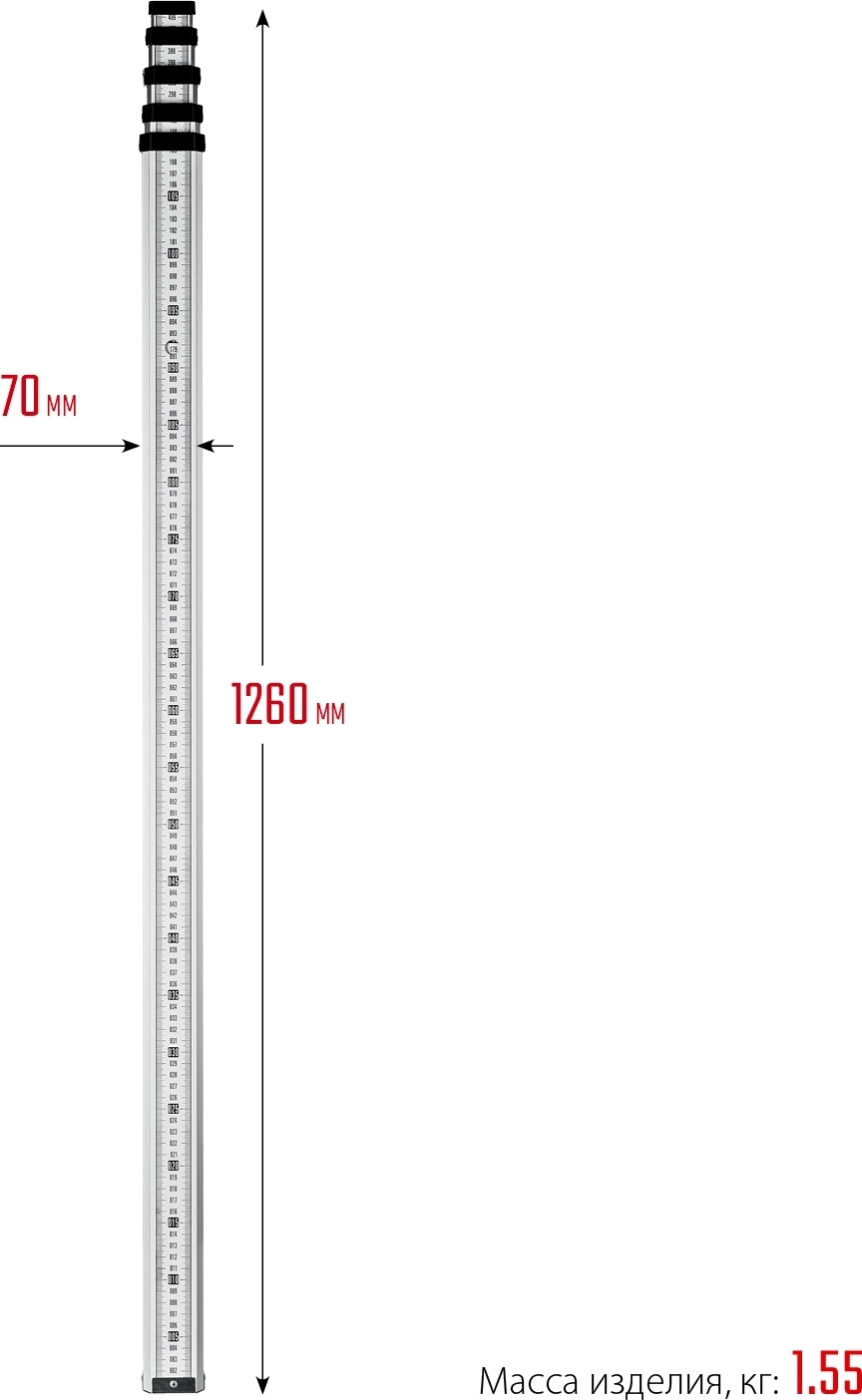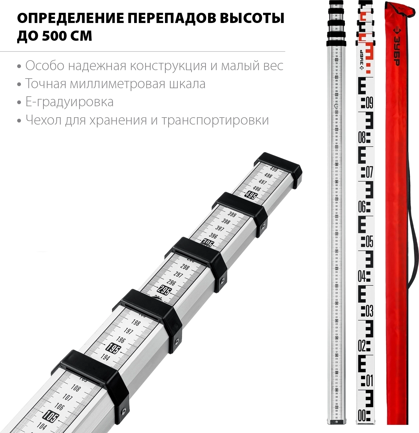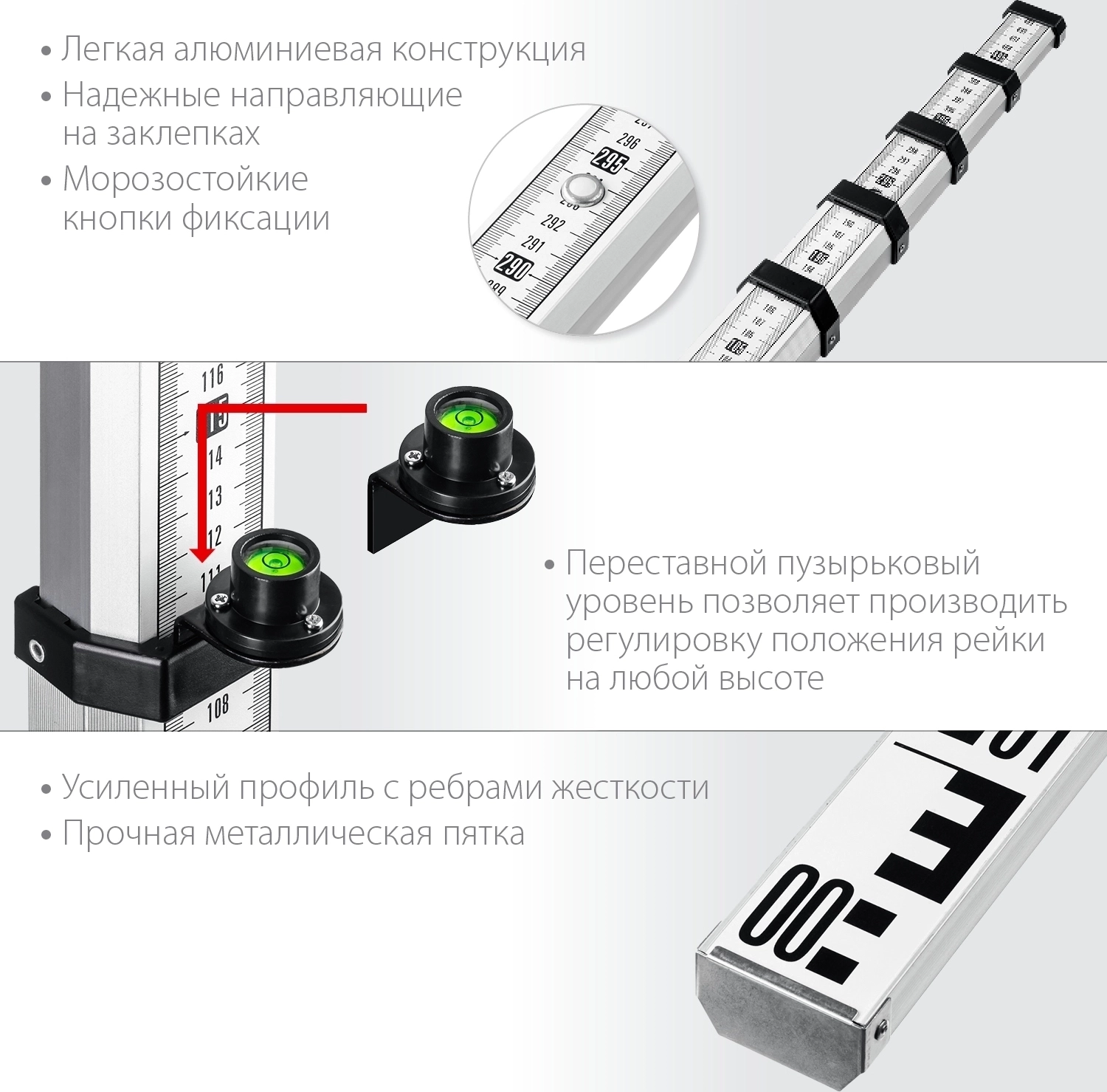 Профессиональный инструмент для работы с лазерным, оптическим инструментом для определения перепадов высоты. Имеет миллиметровую шкалу и E-градуировку .