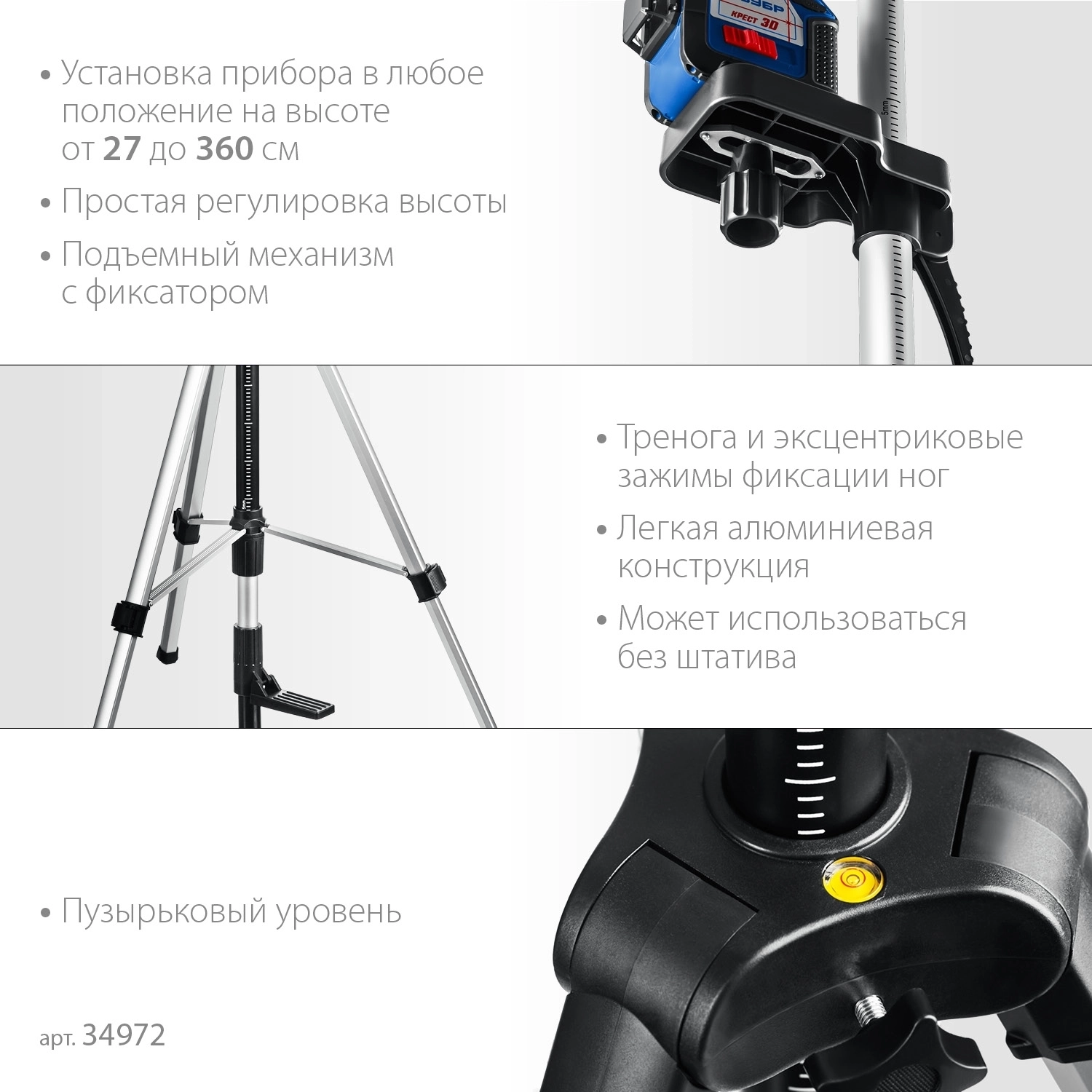Элевационная распорная наборная штанга-штатив с треногой ЗУБР ШШ-4