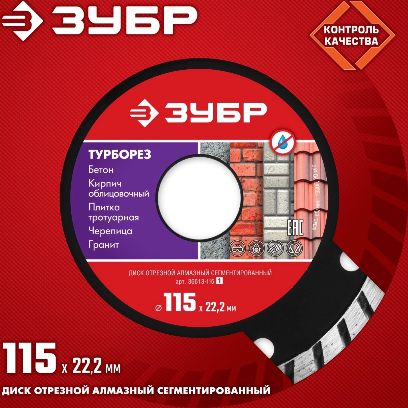 Сегментированный алмазный диск ЗУБР Турборез, 115 мм, (22.2 мм, 7 х 2.4 мм)