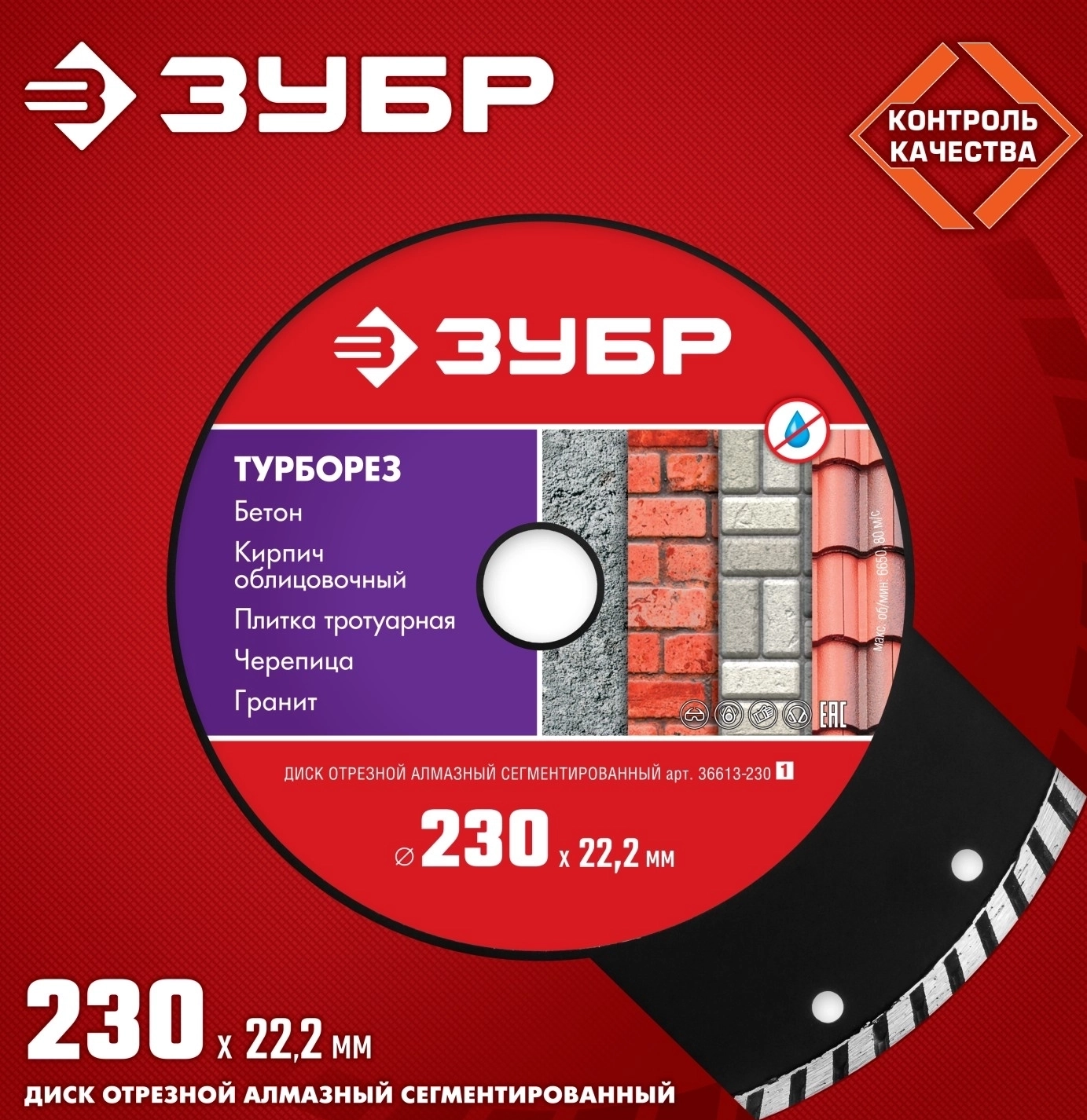 Сегментированный алмазный диск ЗУБР Турборез, 230 мм, (22.2 мм, 7 х 3.1 мм)