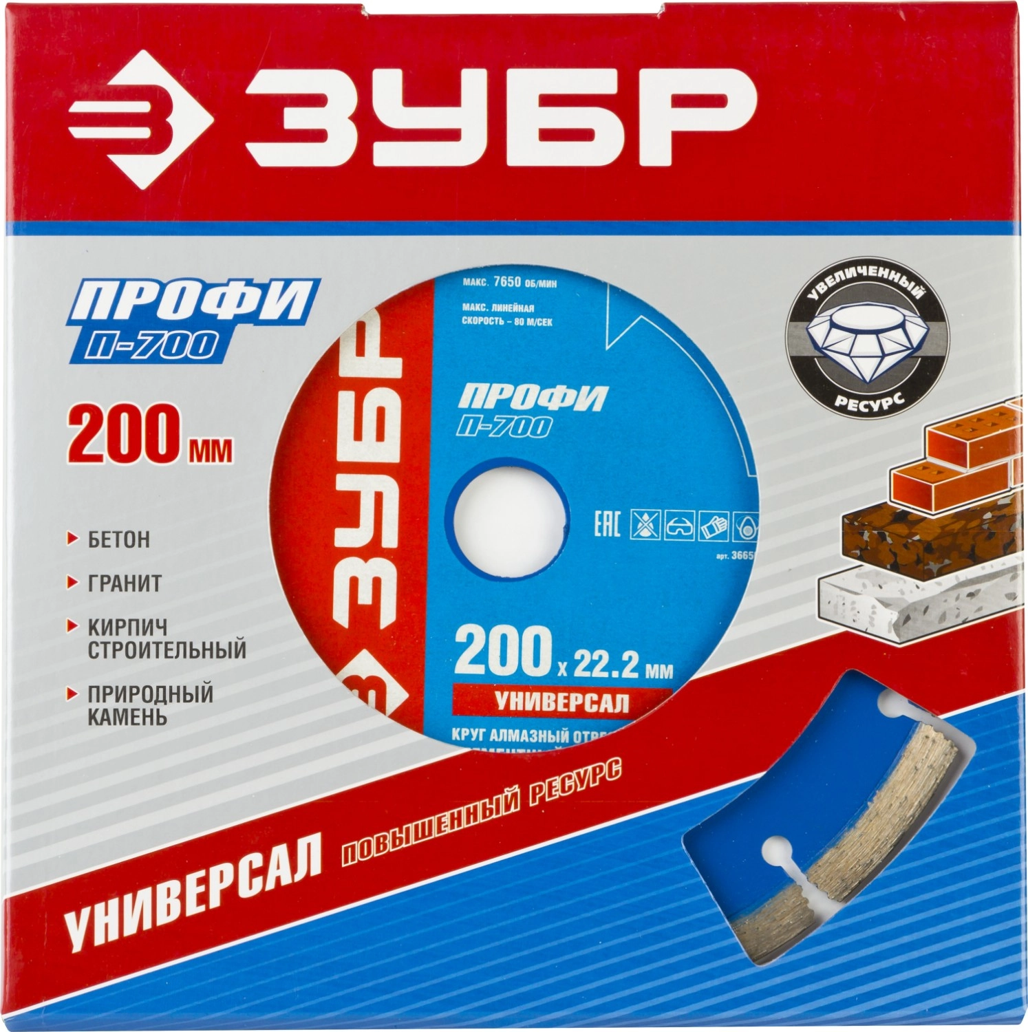 Профессионал ЗУБР Т-700 Универсал, 200 мм, (22.2 мм, 10 х 2.6 мм), сегментный алмазный диск
