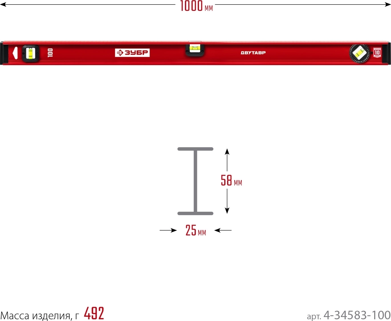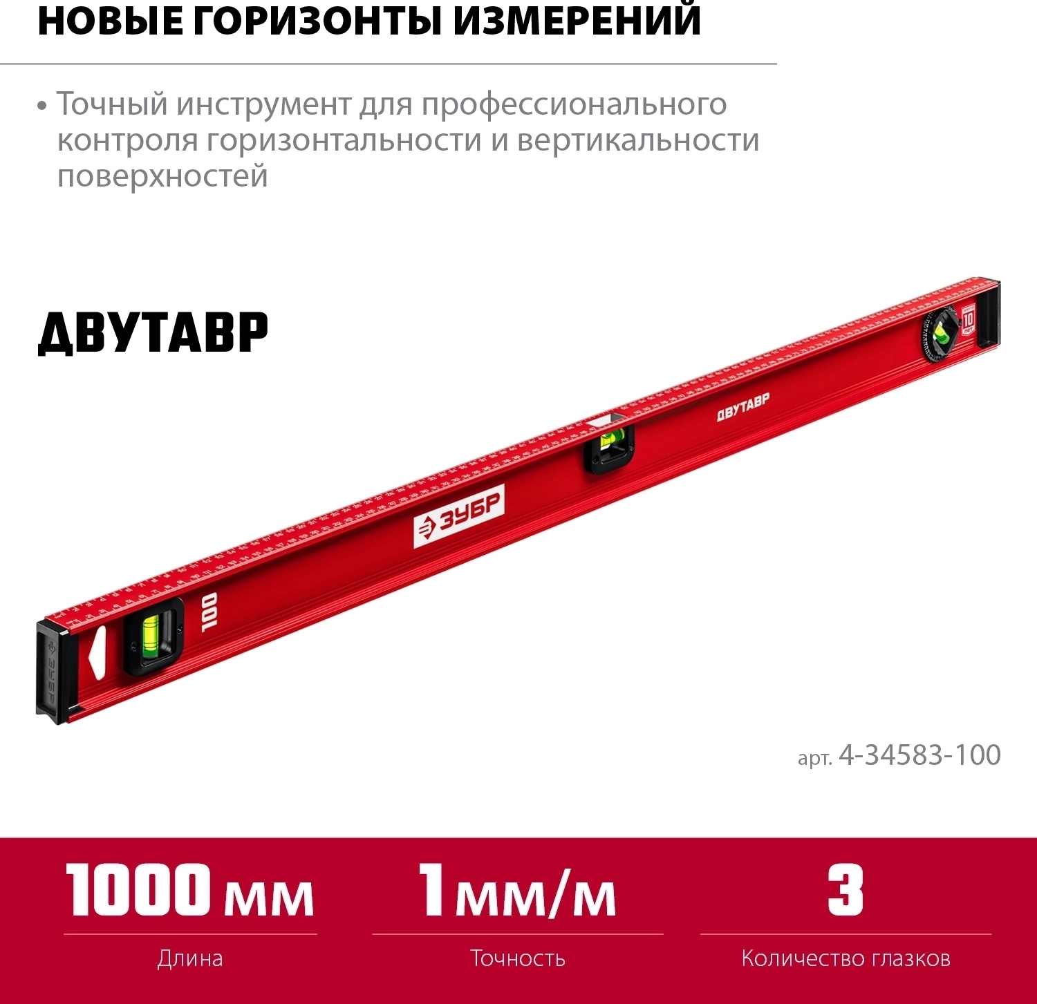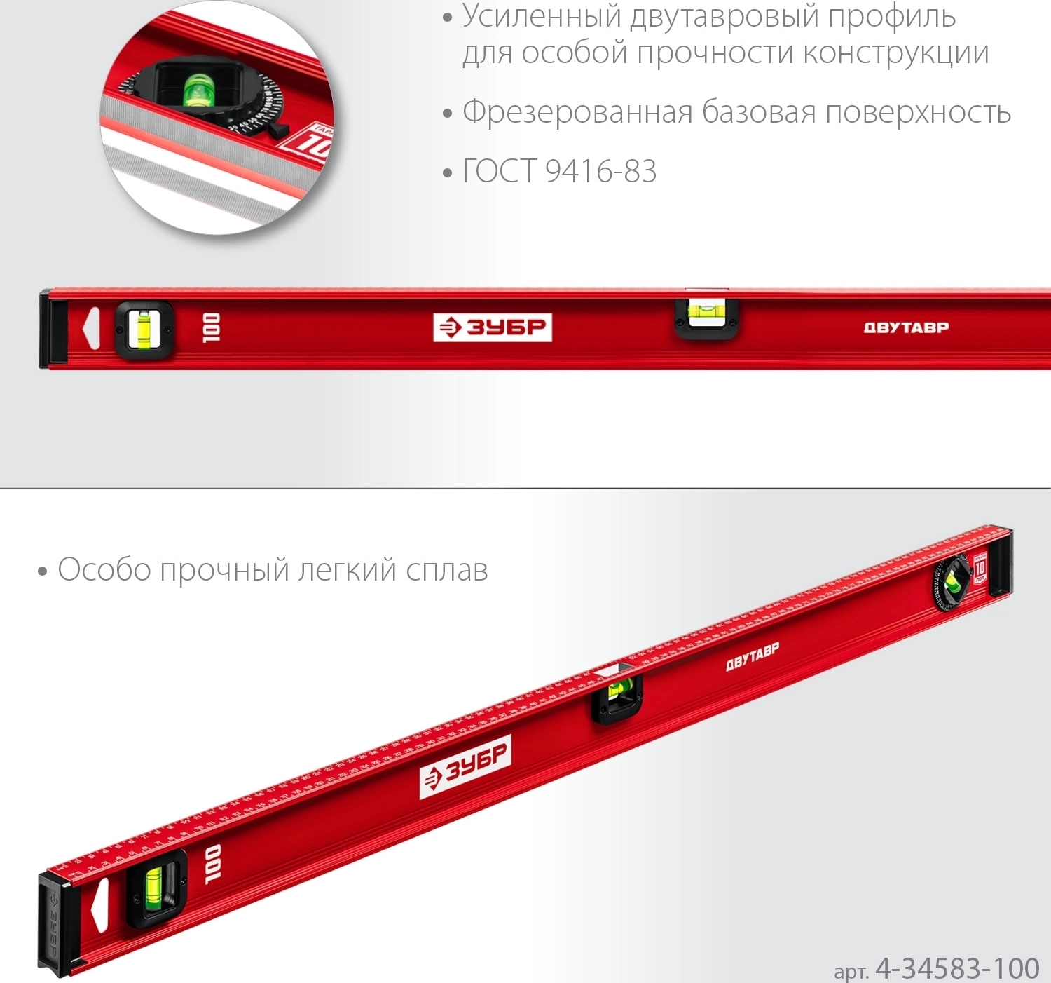 Уровень с усиленным профилем ЗУБР ДВУТАВР, 1000 мм, двутавровый