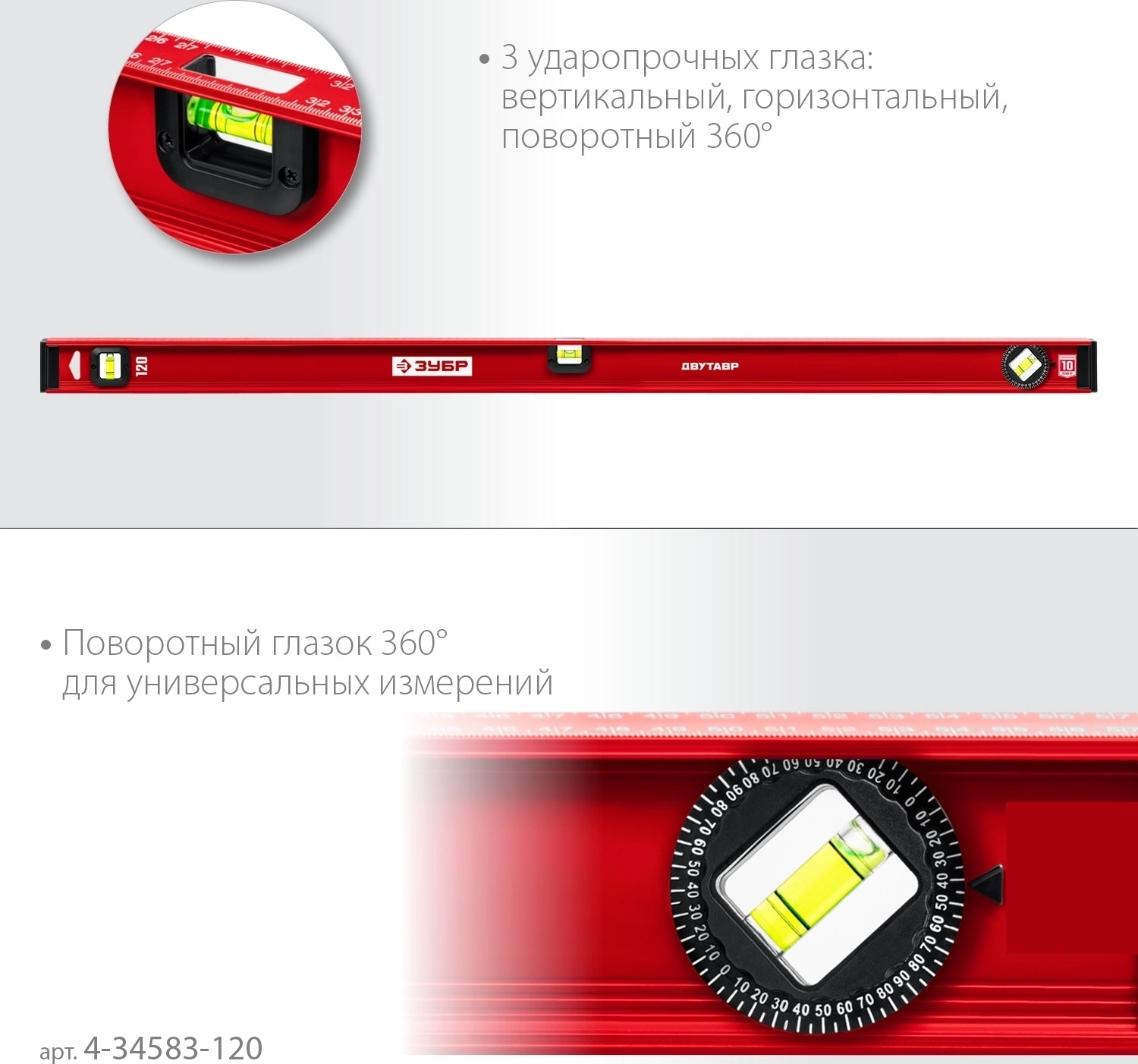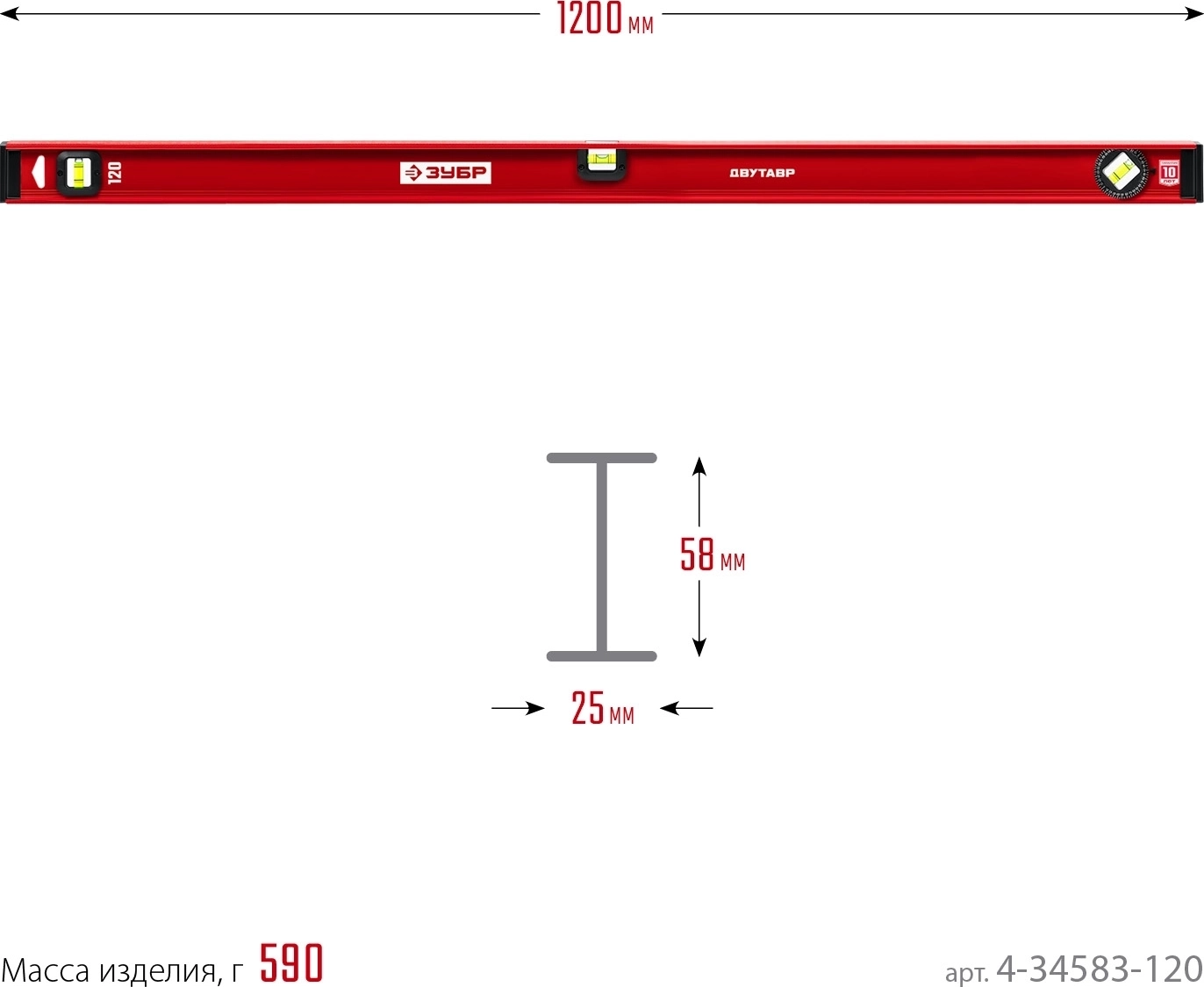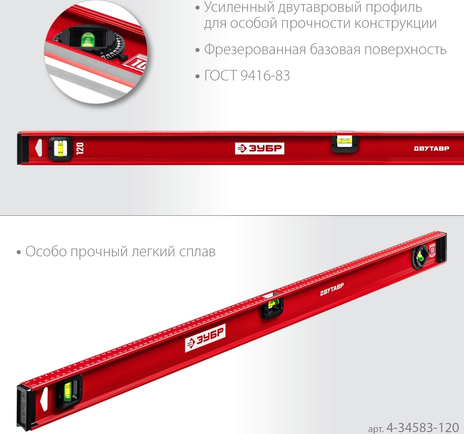 Уровень с усиленным профилем ЗУБР ДВУТАВР, 1200 мм, двутавровый