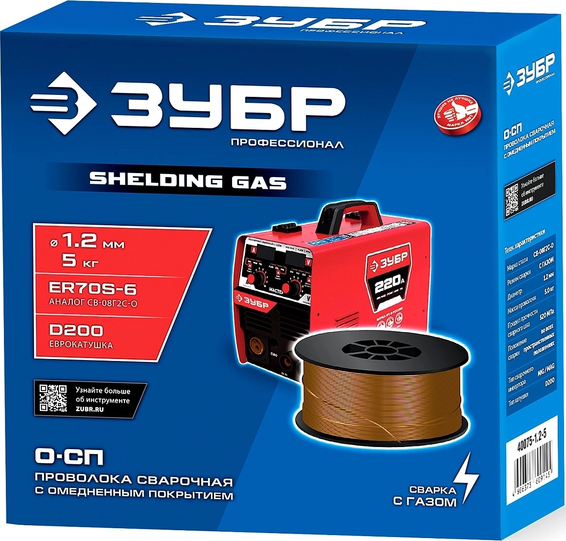 Профессионал ЗУБР О-СП, d 1.2 мм, 5 кг, омеднённая сварочная проволока, тип ER70S-6 (аналог Св-08Г2С-О)