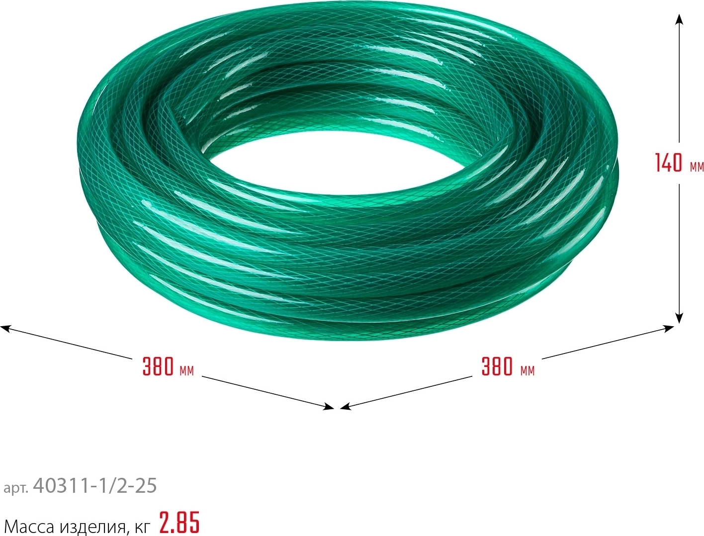 Эластичный трехслойный шланг изготовлен из высококачественного ПВХ и армирован прочными полиэстеровыми нитями. Высокая устойчивость формы шланга достигается благодаря особой технологии армировки: нити накладываются под оптимальным углом к горизонтальной оси шланга. За счет этого диаметр и длина шланга остаются стабильными. Используется при проведении поливочных или иных работ, требующих водоснабжения. Шланг поливочный трехслойный армированный используется для поливочных работ на садово-огородных участках. Шланг изготовлен из медицинского ПВХ, не токсичен, имеет гладкую внутреннюю поверхность, препятствующую образованию водорослей. Трубка шланга армирована высокопрочной полимерной нитью, которая предотвращает повреждение во время работы, тем самым обеспечивая надёжность и длительный срок службы изделия.