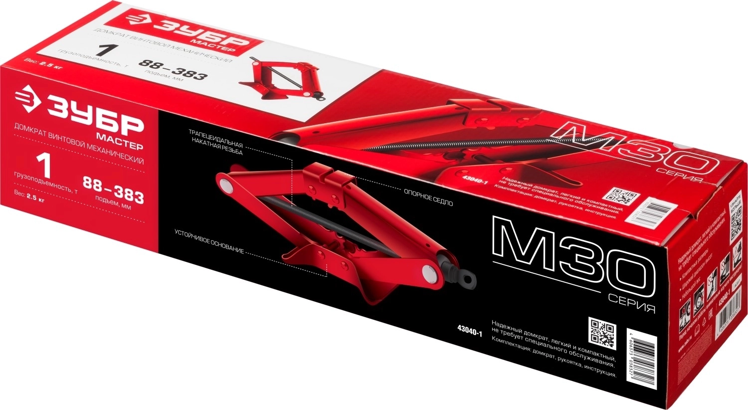Винтовой механический домкрат ЗУБР РОМБ, 1 т, 88 - 383 мм