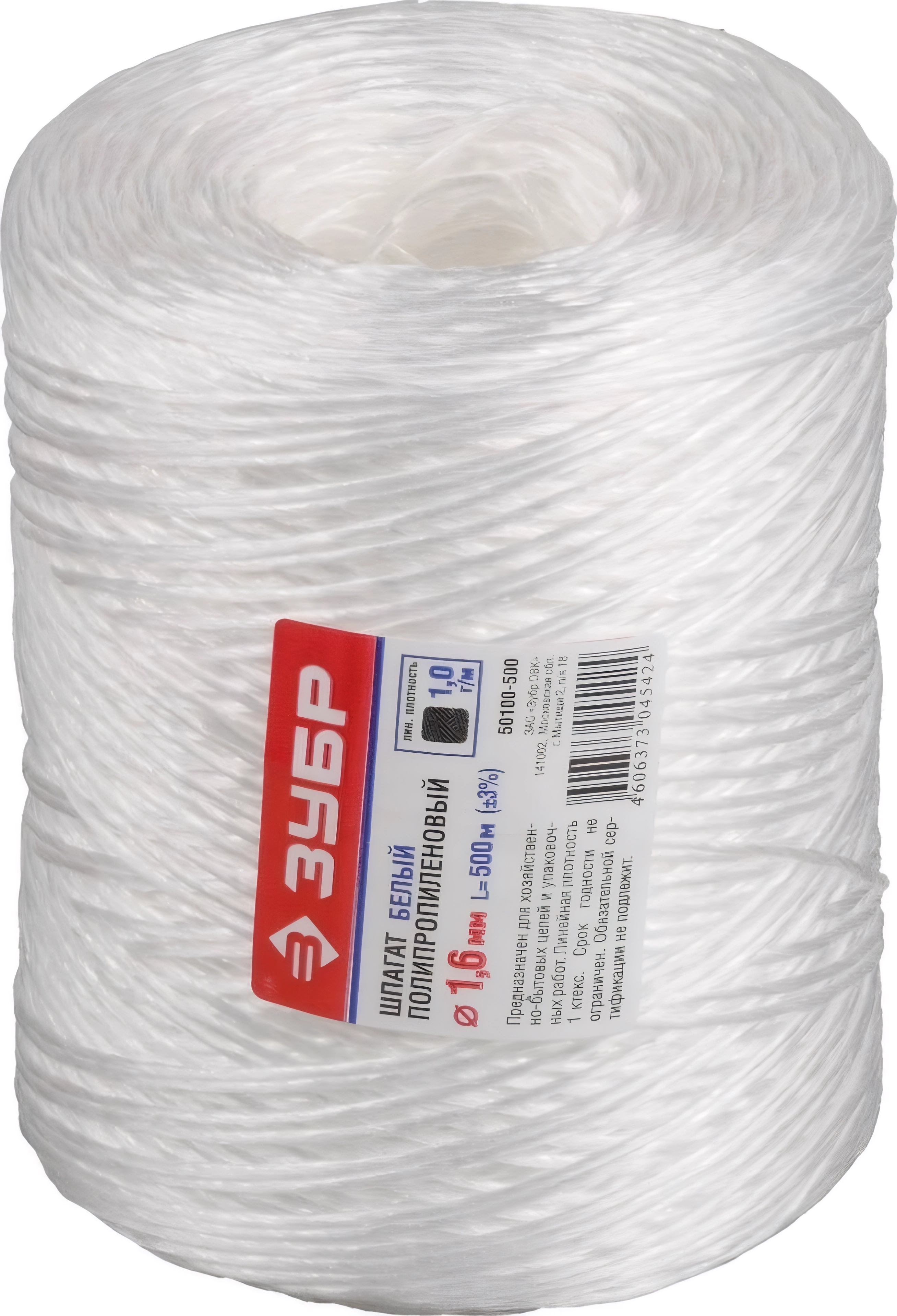 Полипропиленовый шпагат ЗУБР d 1.6 мм, 500 м, 1600 текс, 32 кгс, белый
